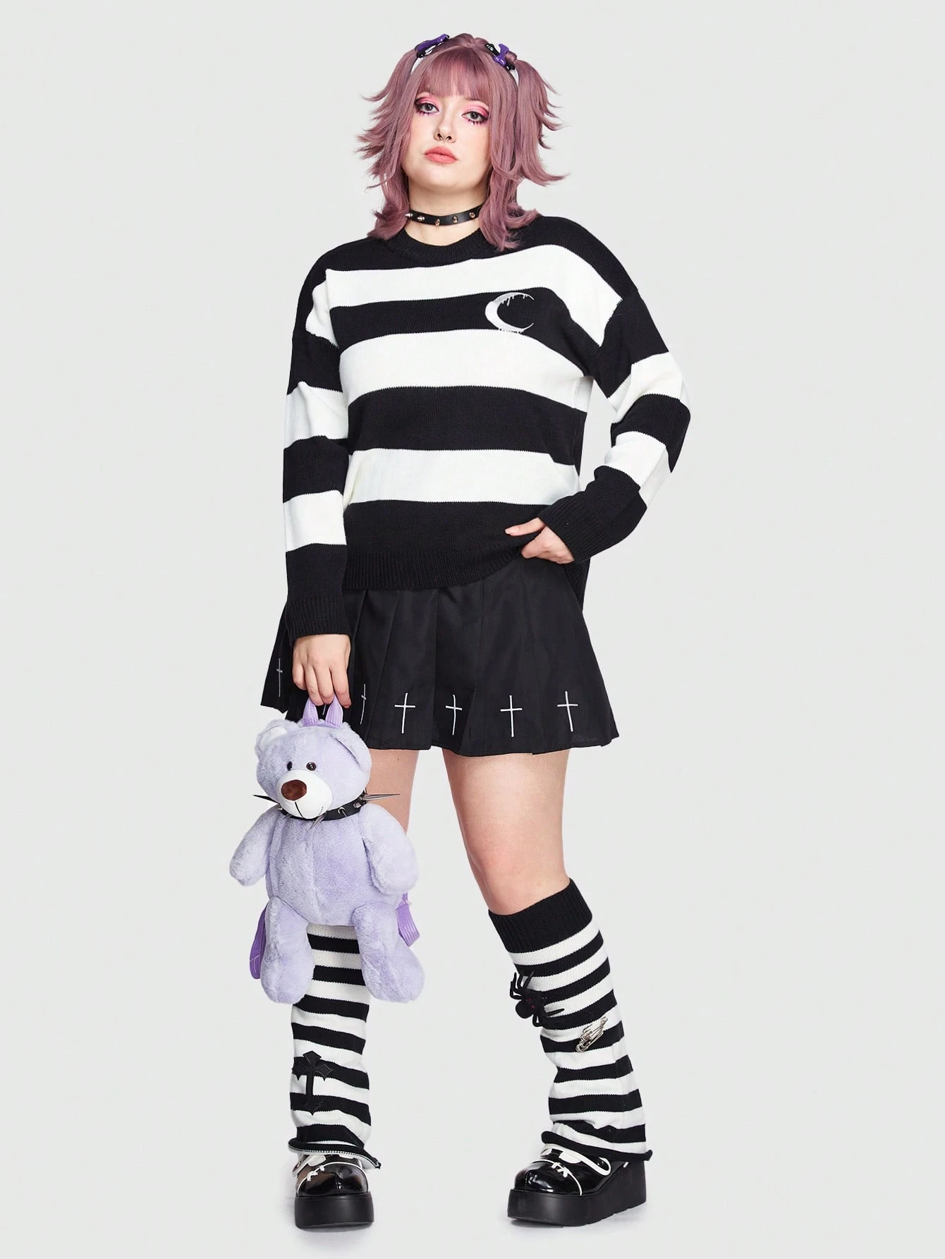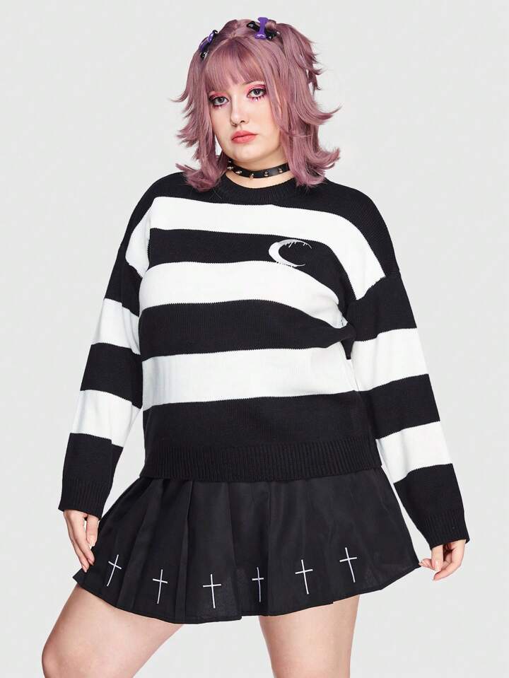 Kawaii Plus Striped Pattern Drop Shoulder Sweater