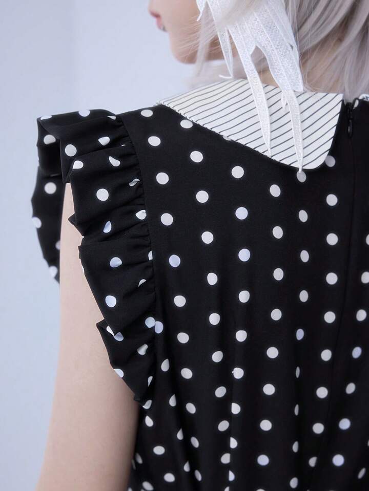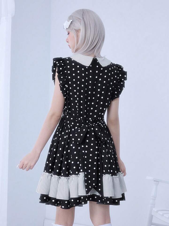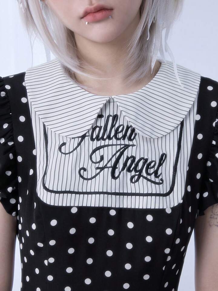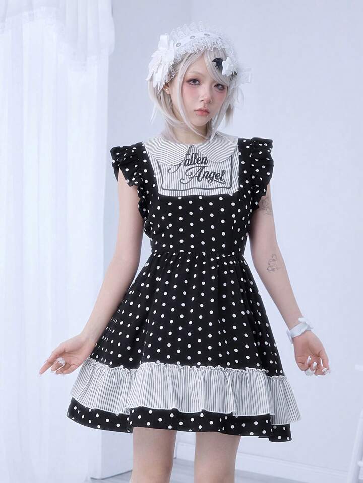 Kawaii Polka Dot Y2K Babe Letter Embroidery Peter Pan Collar Women Dress