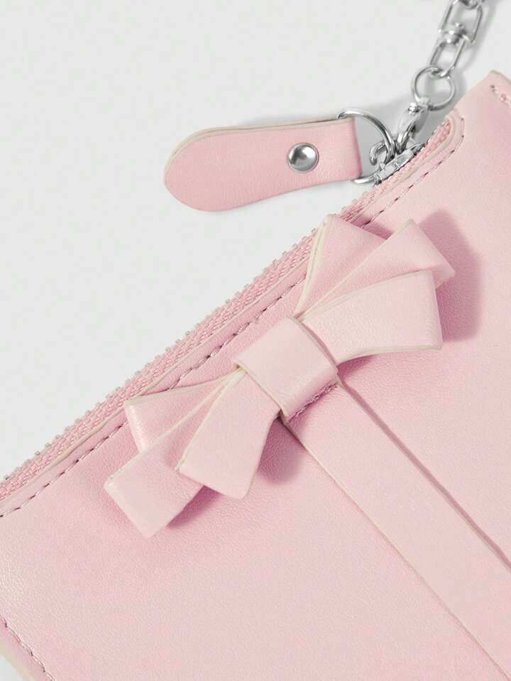 Kawaii Retro Elegant French Pink 3D Bow Keychain Wallet Card Holder Coin Pouch, Y2K Sweet Bag Charm Accessory, Photo ID Bus Card Transparent Sleeve, Suitable For Travel, Vacation, Social, Shopping