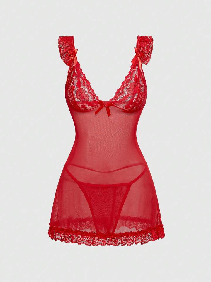 Kawaii Romantic Sexy Resort Style Lace & Mesh Panel Dress Suit For Women