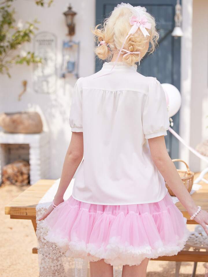 Kawaii Ruffle Trim Puff Sleeve Shirt