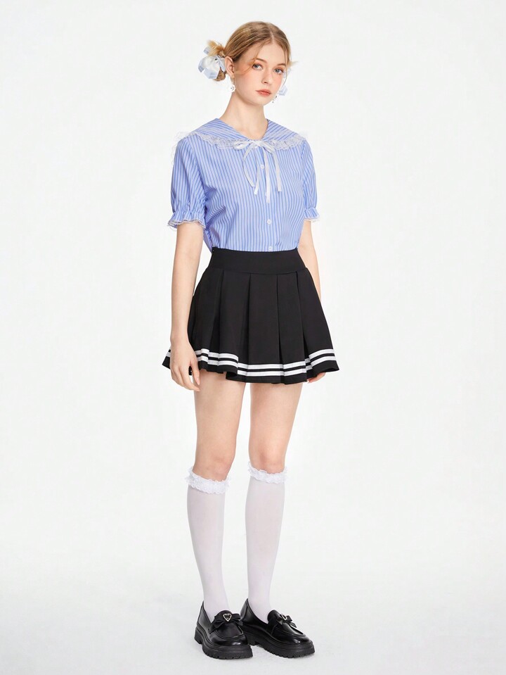 Kawaii Sailor Collar Puff Sleeve Shirt For Summer, School