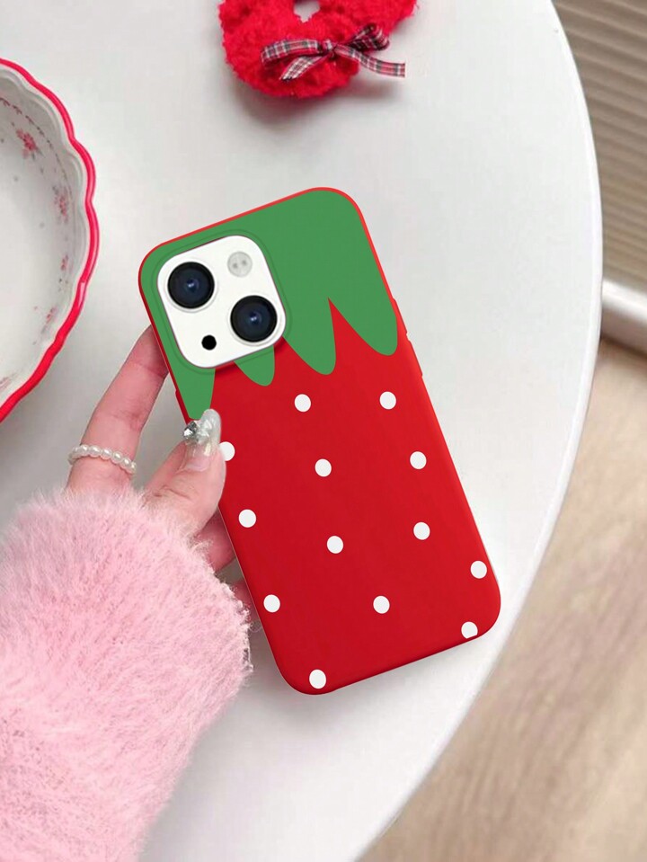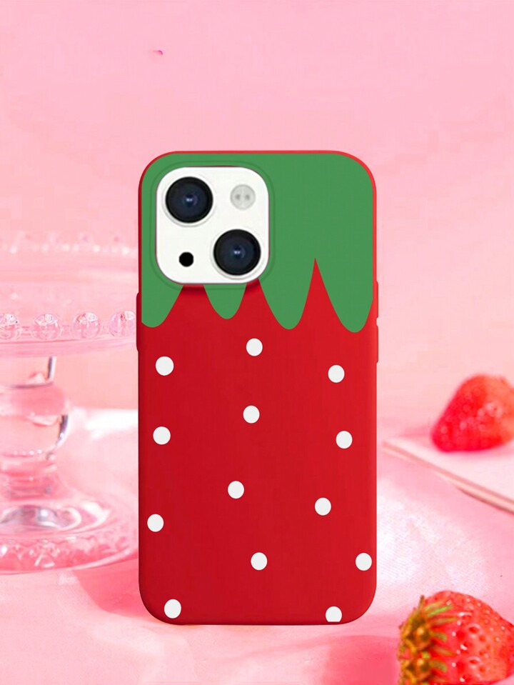 Kawaii Simple White Polka Dots Strawberry Painting Red Phone Case For IPhone12/13/14 Series