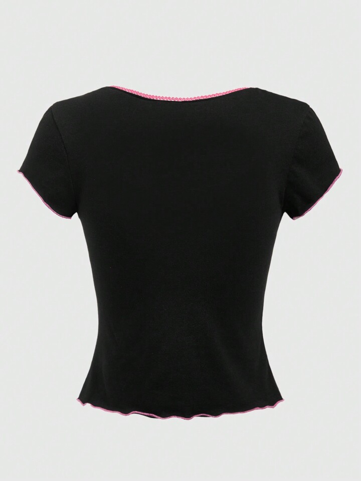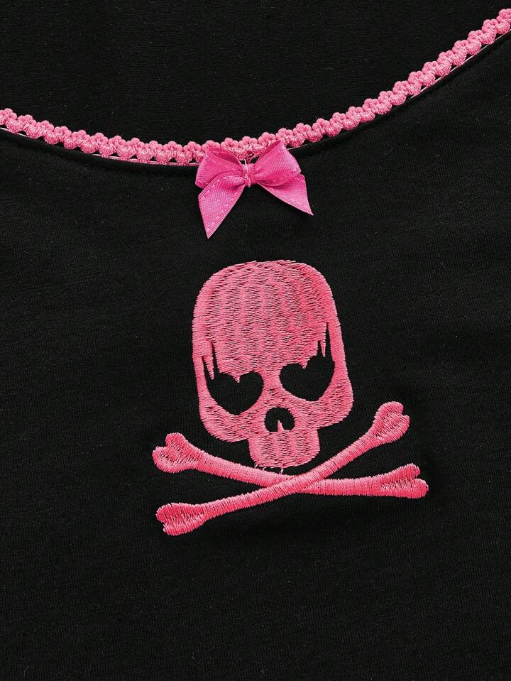Kawaii Skull Embroidered Butterfly Front T-Shirt