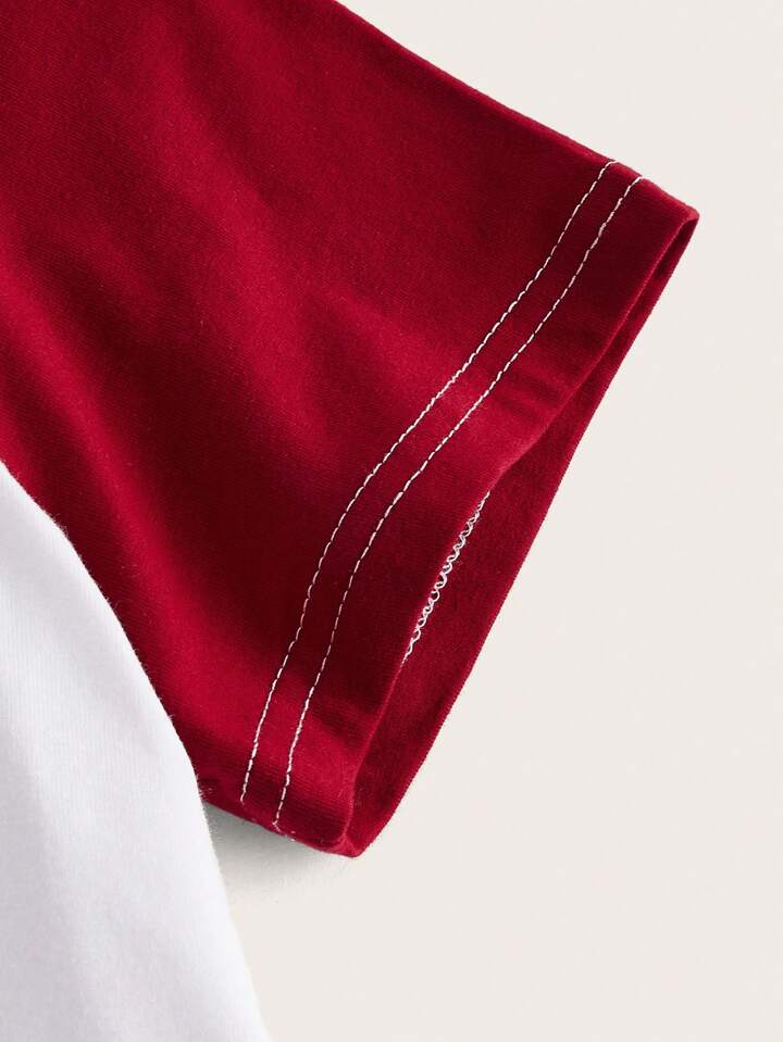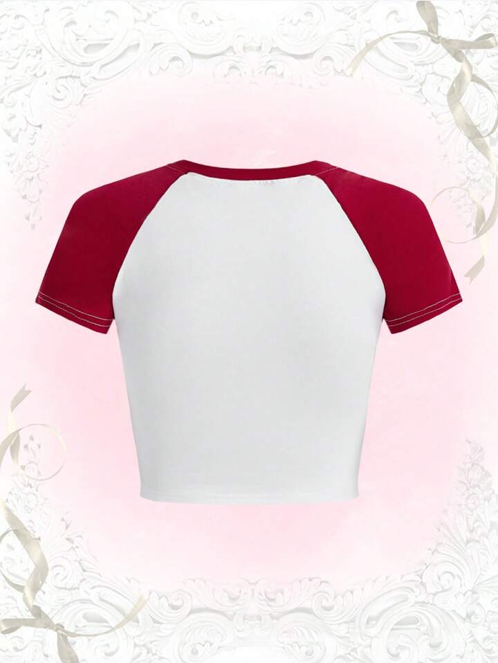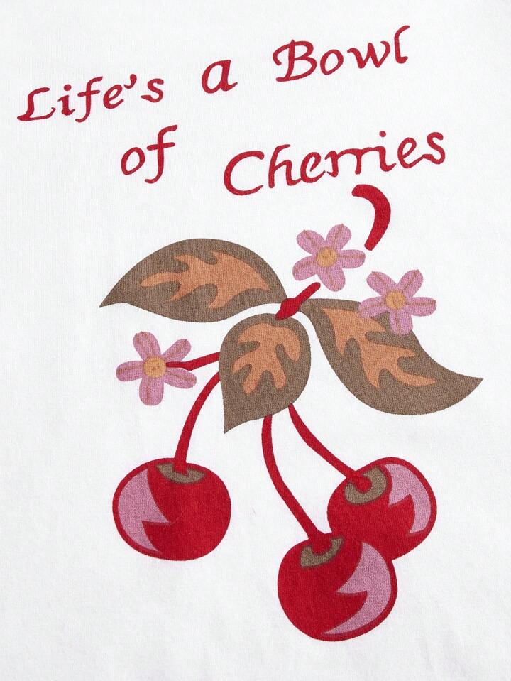 Kawaii Slogan Cherry Graphic Colorblock Tee