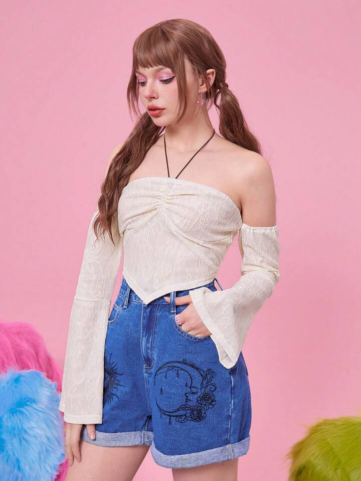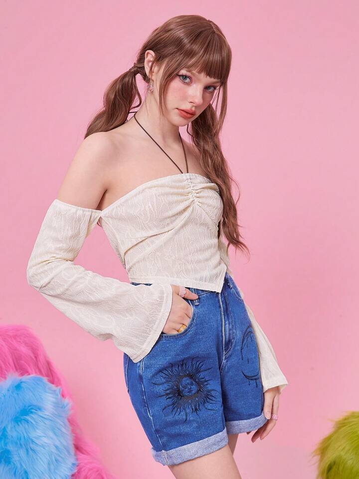 Kawaii Solid Halter Neck Asymmetrical Hem Top