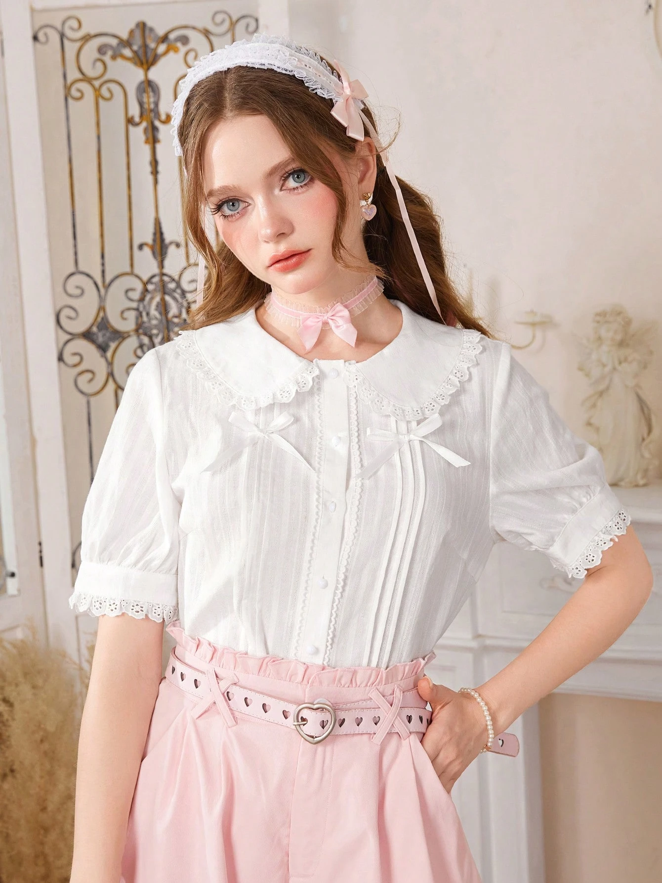 Kawaii Solid Lace Trim Statement Collar Shirt