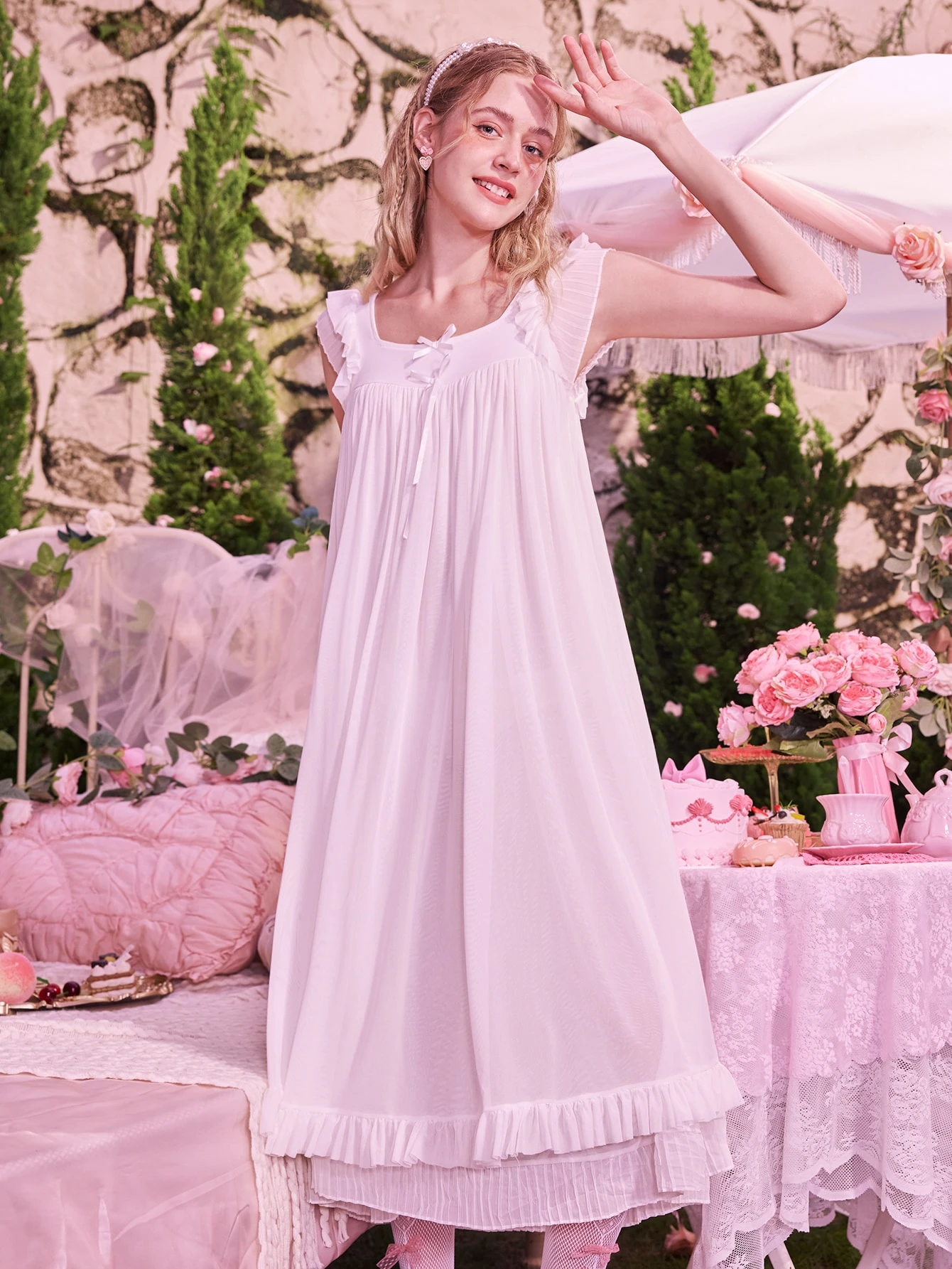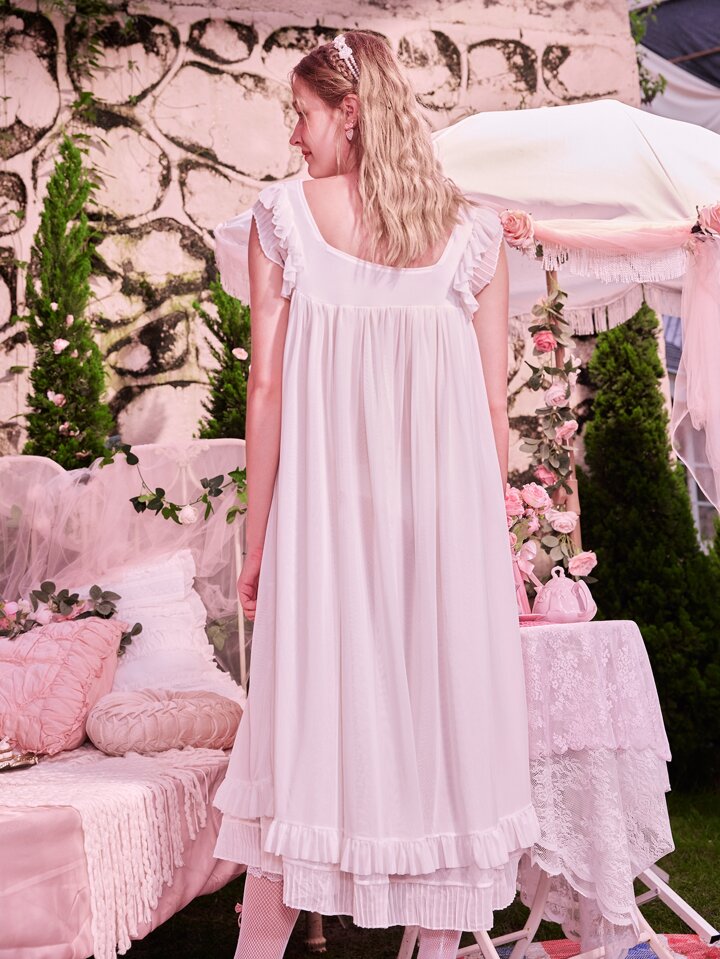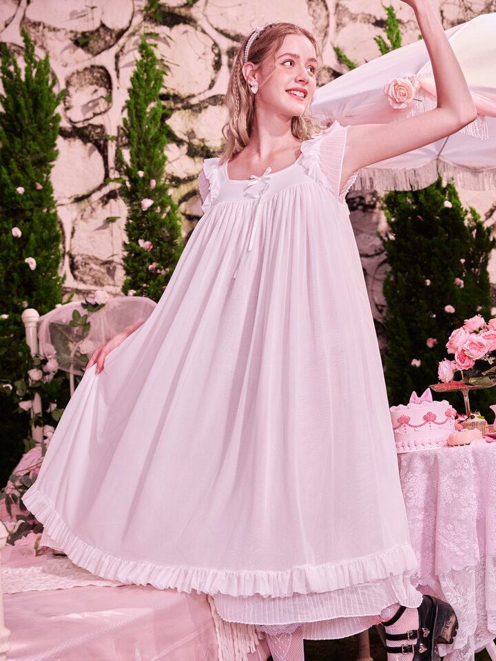 Kawaii Solid Ruffle Hem Night Dress
