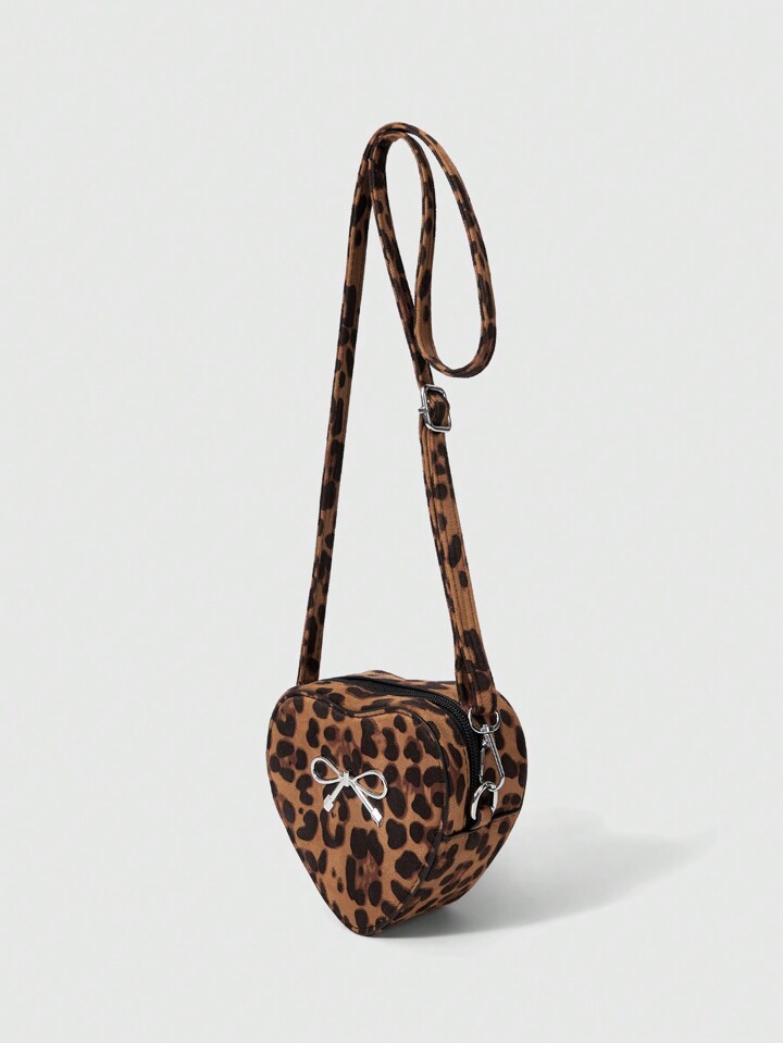 Kawaii Stylish Heart-Shaped Leopard Print Shoulder Crossbody Bag
