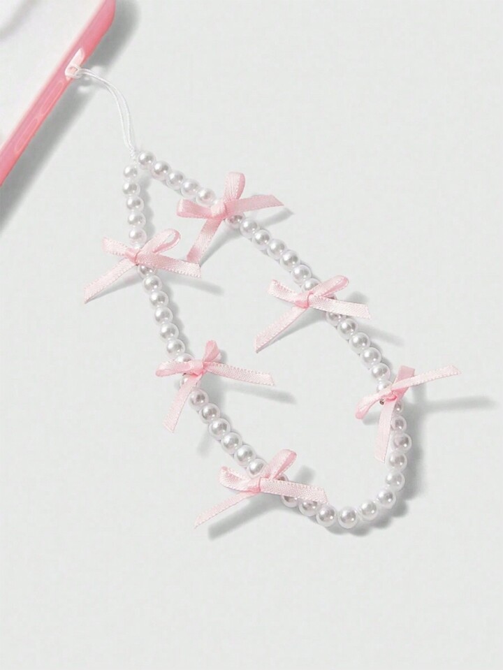 Kawaii Sweet Girl Pearl Necklace With Ribbon Bow And Cute Butterfly Pendant, Pink Frame Phone Case Compatible With IPhone 12 13 14 Series And Other Models
