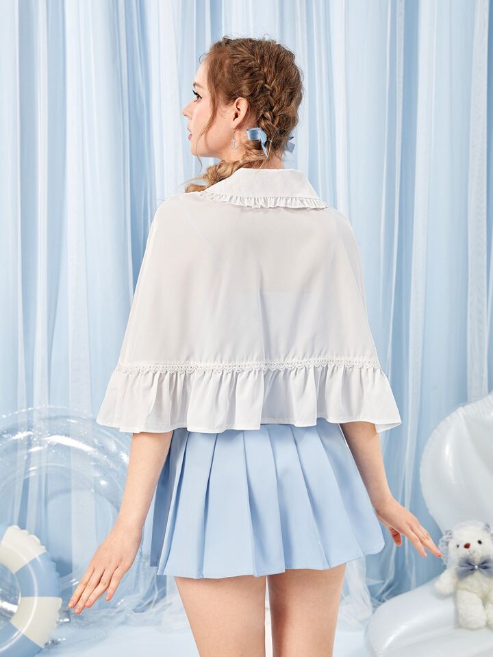 Kawaii Tie Neck Ruffle Hem Cloak Top