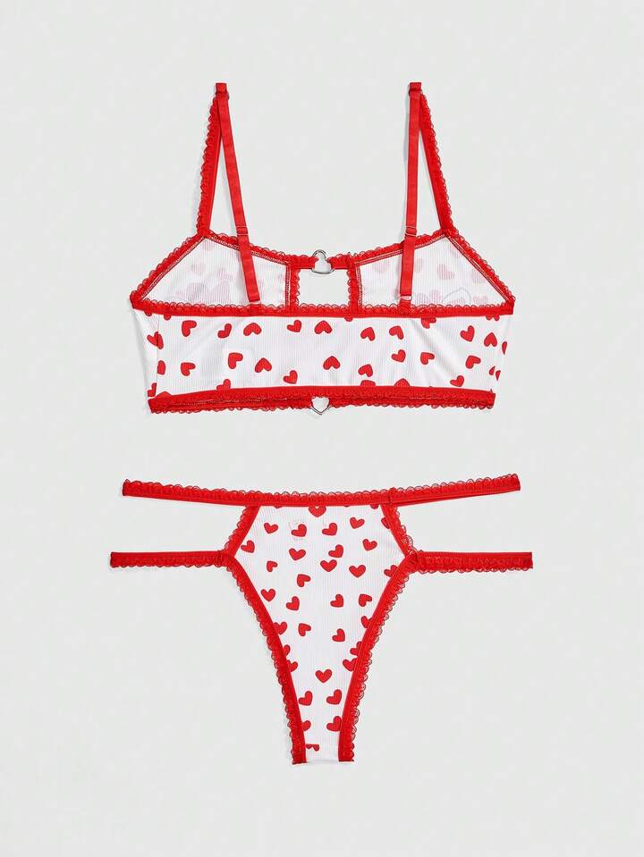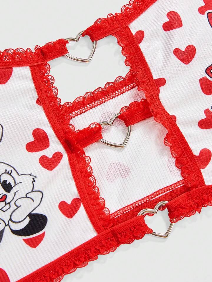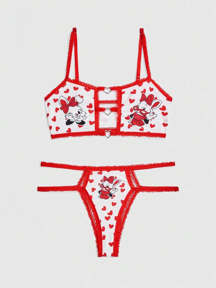 Kawaii Valentine's Day Women's Sweet & Innocent Heart Rabbit Heart Metal Buckle Cute Lingerie Set