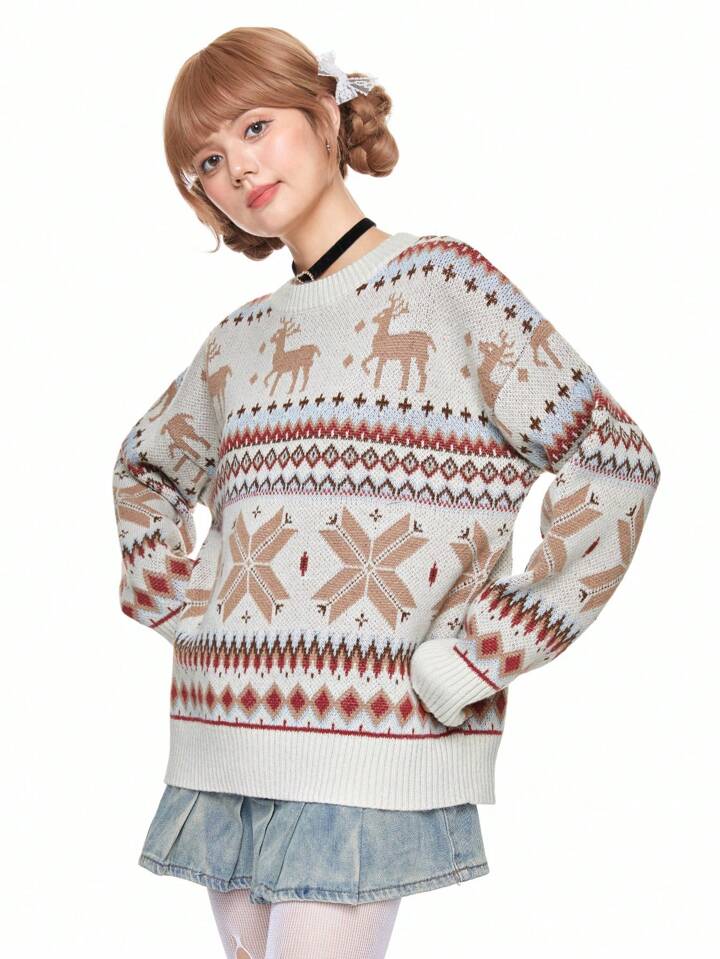 Kawaii Vintage Knitted Christmas Pullover Sweater, Autumn/Winter