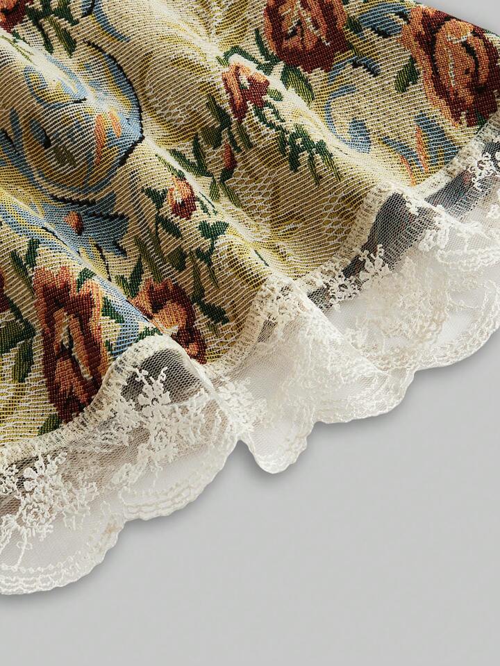 Kawaii Vintage Victorian Court Style Floral Strap Women Long Dress