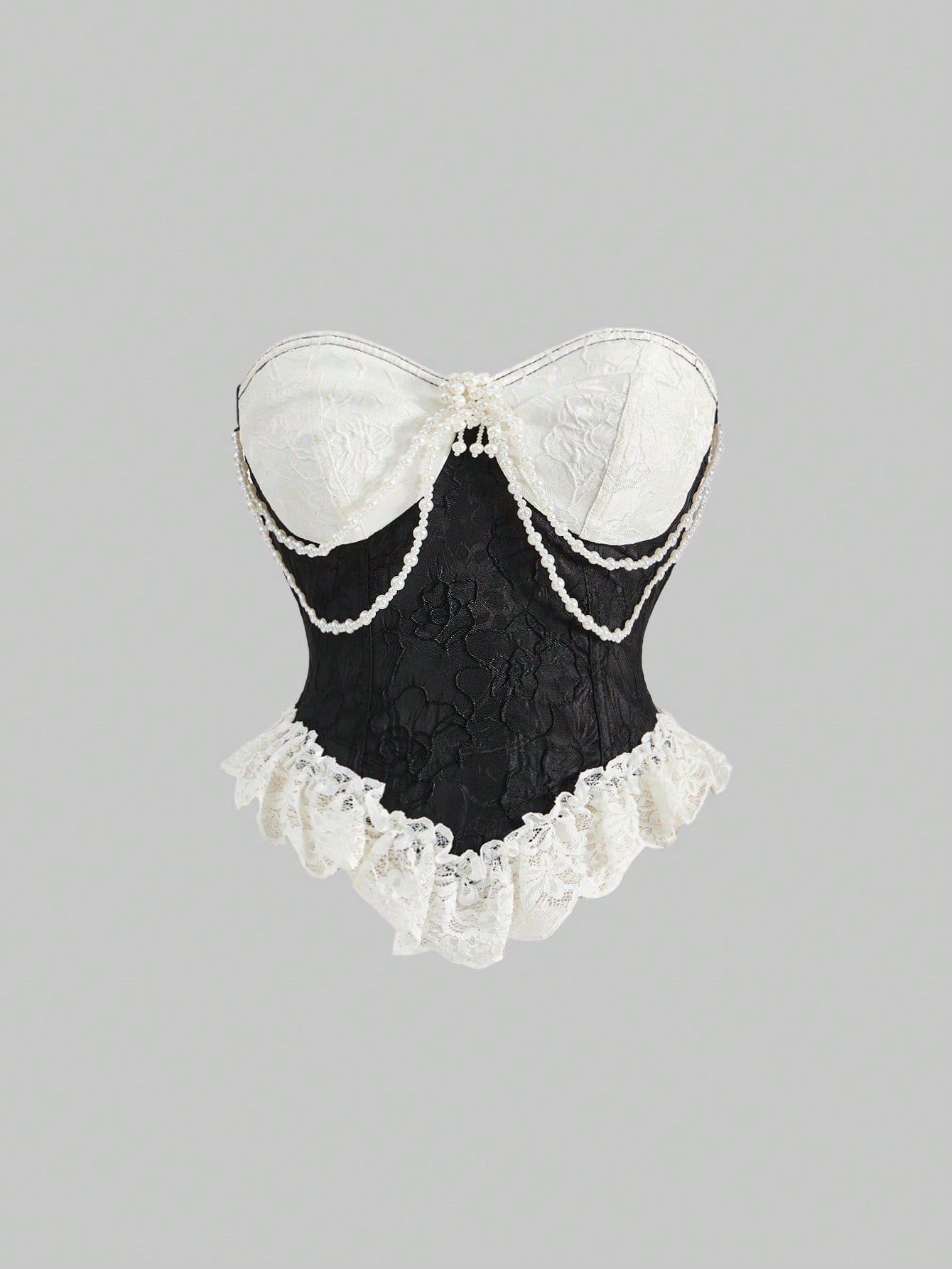 Kawaii Vintage Victorian Style Lace Satin Pearl Decorated Bustier Top