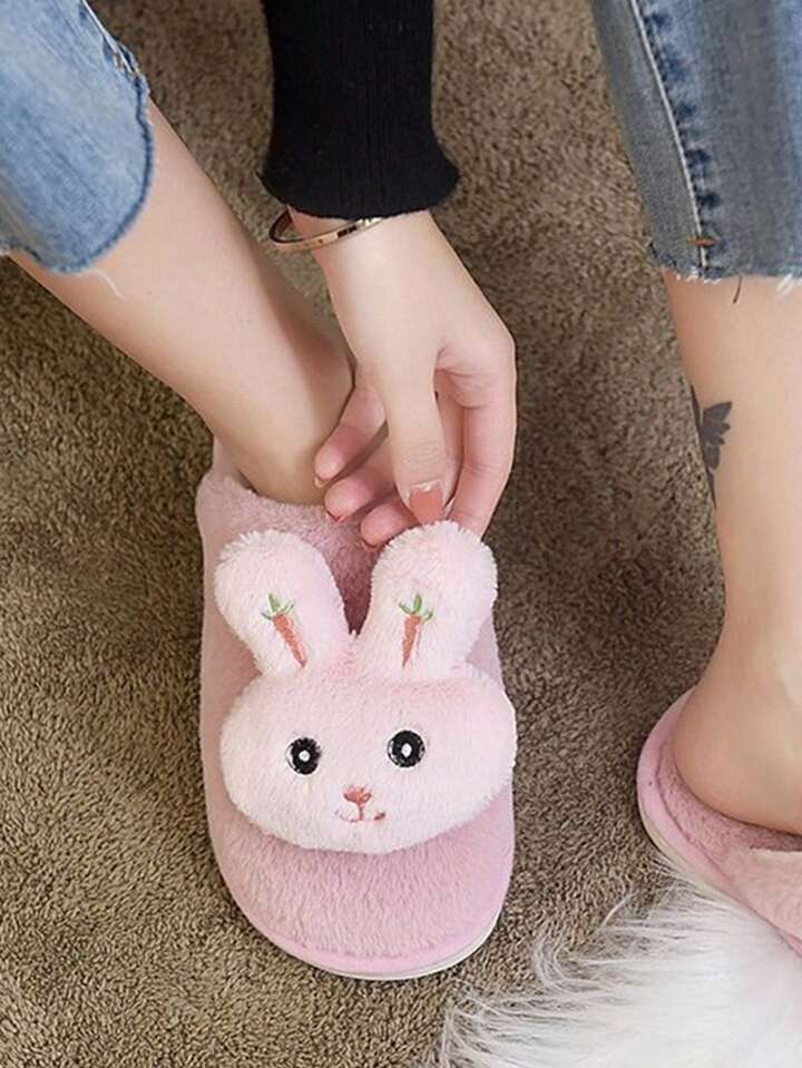 Kawaii Winter Furry Slippers For Women, Couples' Indoor/outdoor Thick-soled Slippers For Home, Anti-slip And Warm