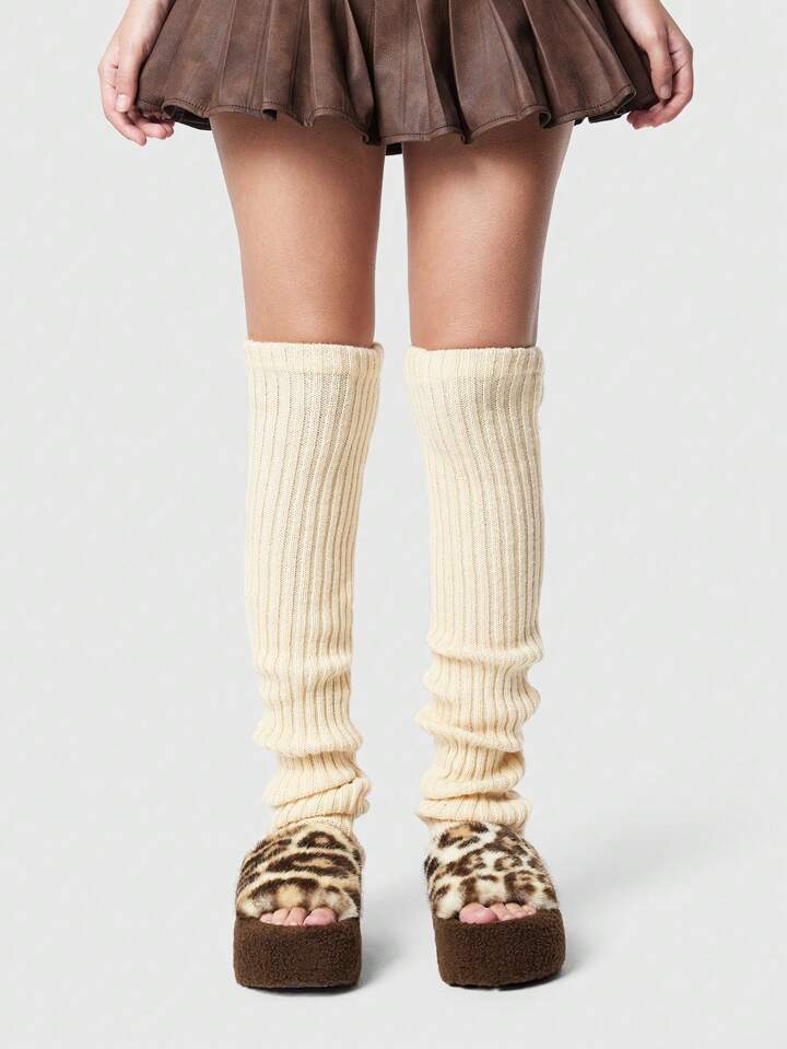 Kawaii Women 8cm Leopard Print Fur Slippers, Open-Toe Plush Slides For Autumn/Winter 2024 For Christmas And New Year Holiday Vibe Fall And Winter