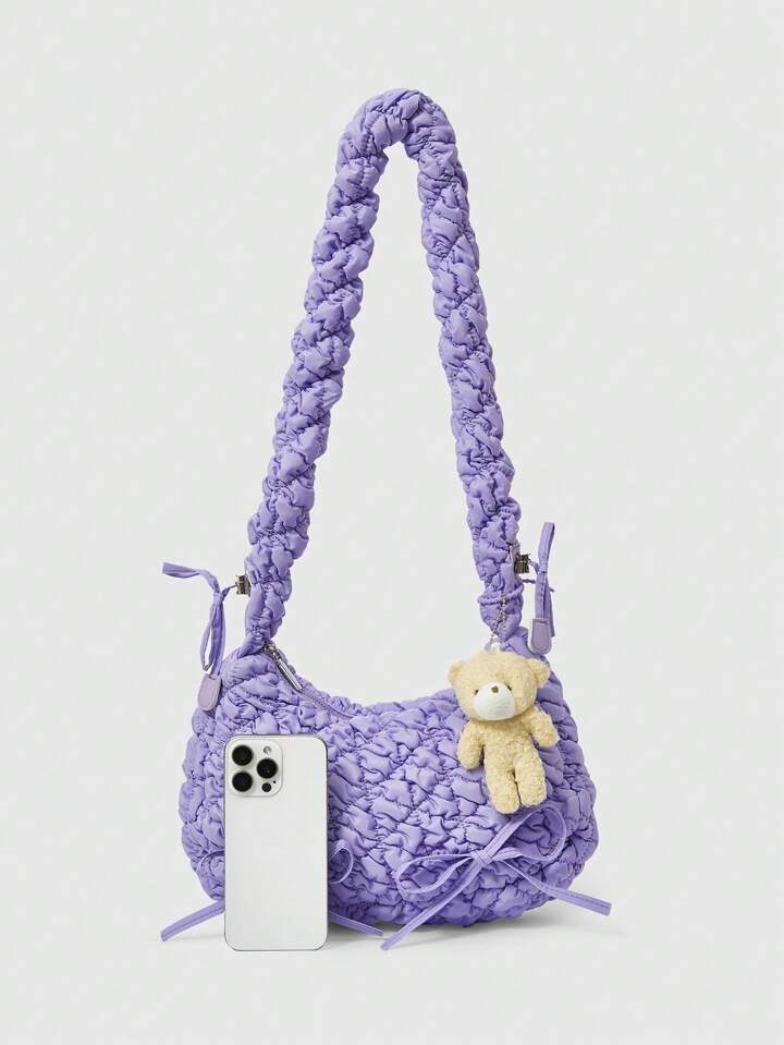 Kawaii Women Casual Versatile Solid Color Bow Decor Shoulder Bag