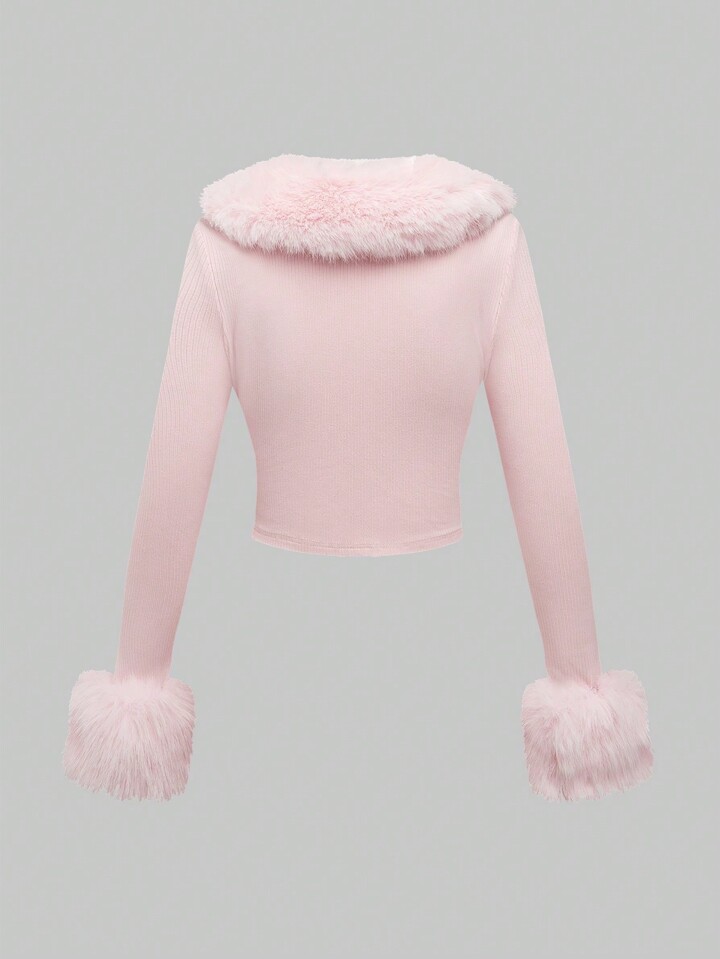 Kawaii Women Himekaji Retro Palace Style Furry Patchwork Long Sleeve Cardigan
