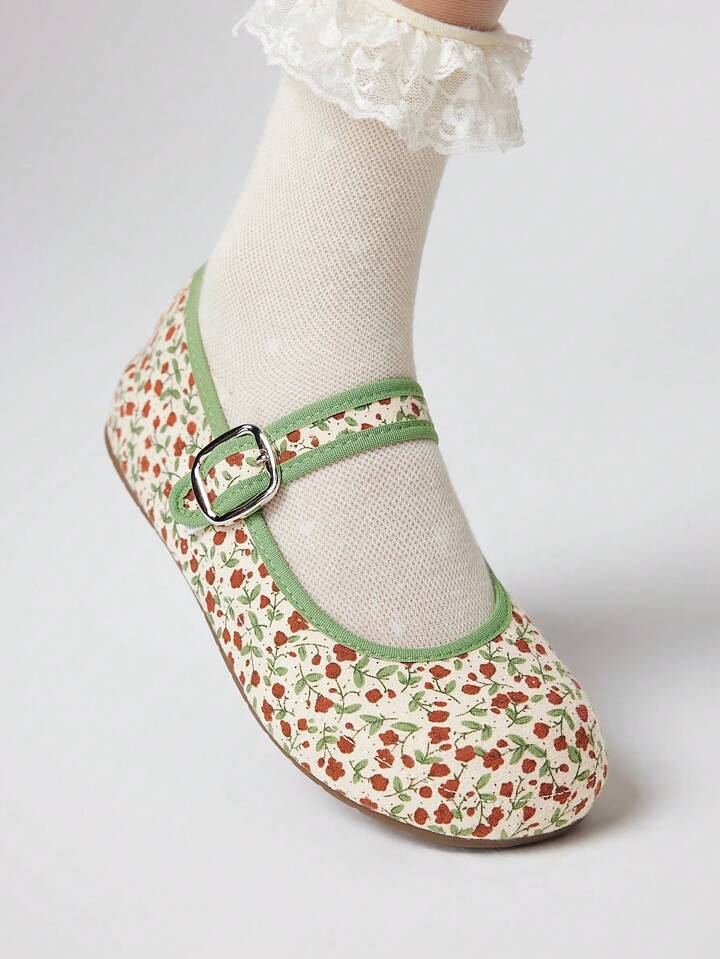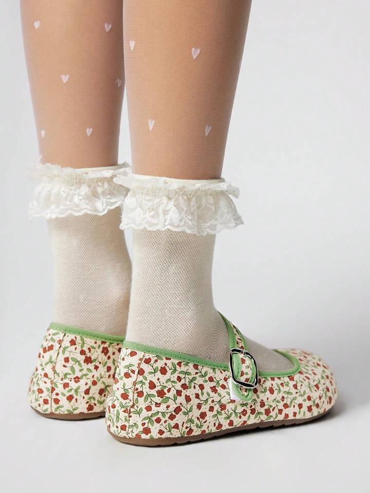 Kawaii Women White Slip-On Mary Jane Flats, Ditsy Floral Pattern Soft Bottom Japanese School Uniform Shoes, Lolita Ruffle Shoes