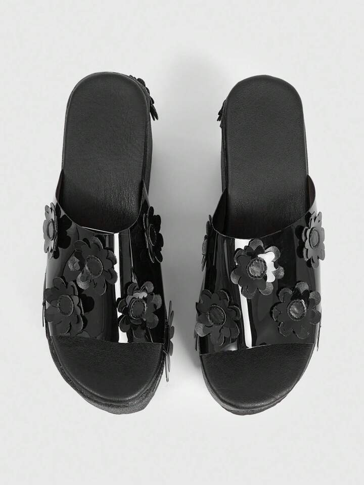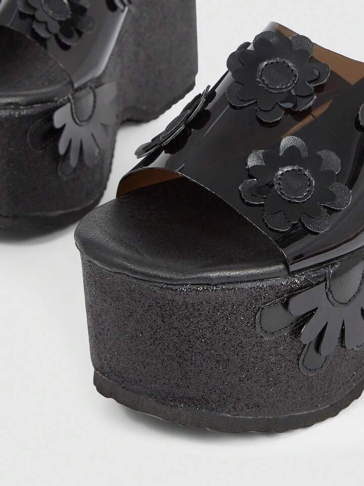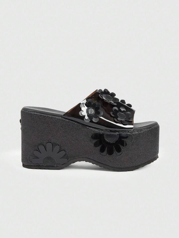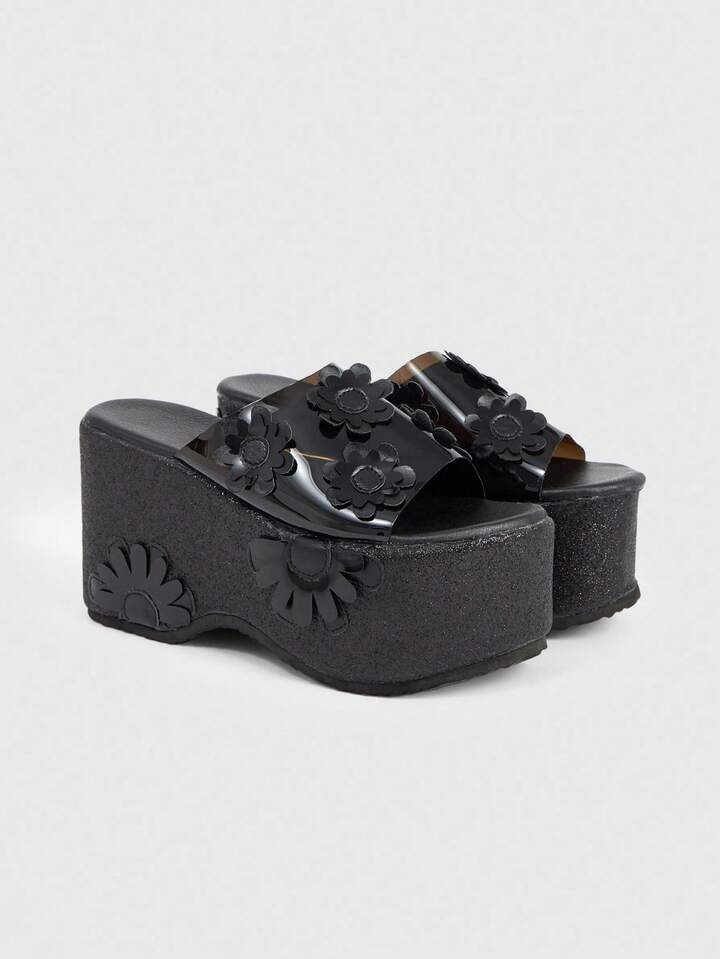 Kawaii Women Y2K Sweet Floral Embellished Dress Sandals Punk Rock Themed Platform Lolita Crystal Glitter Outdoor Slip-On Wedge Sandals