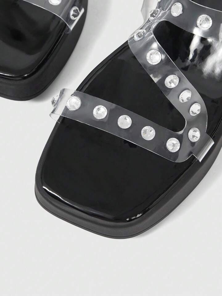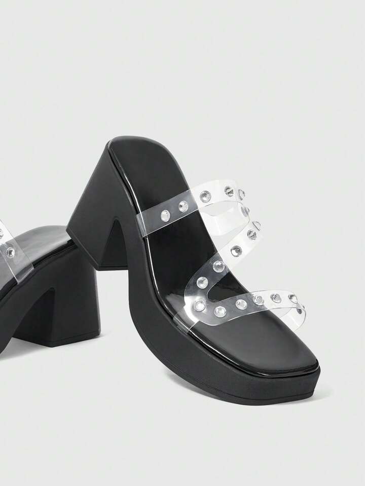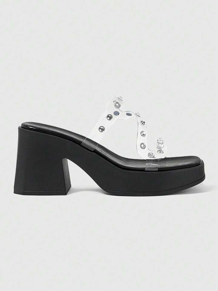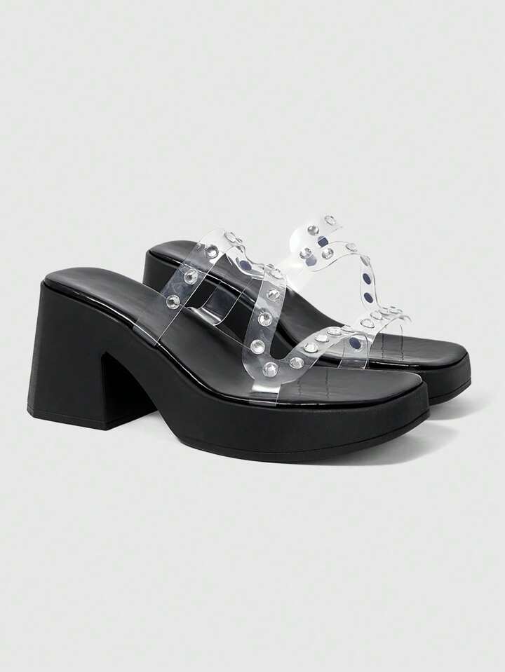 Kawaii Women's 8cm Thick Heel Jelly Slide Sandals, Black High Platform Casual Comfortable Transparent Crystal Peep Toe Strap Slippers