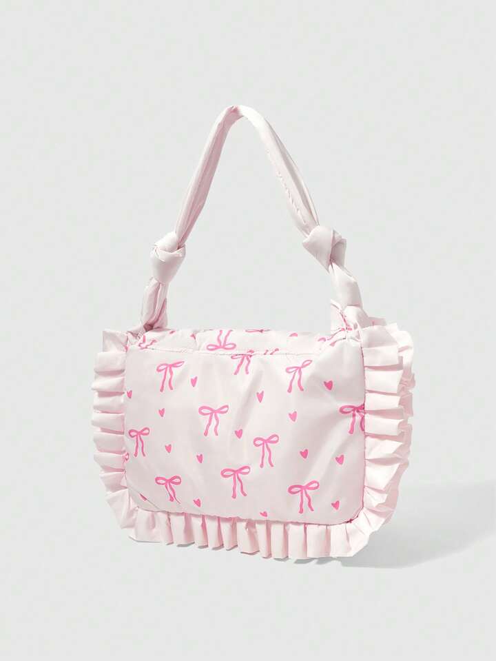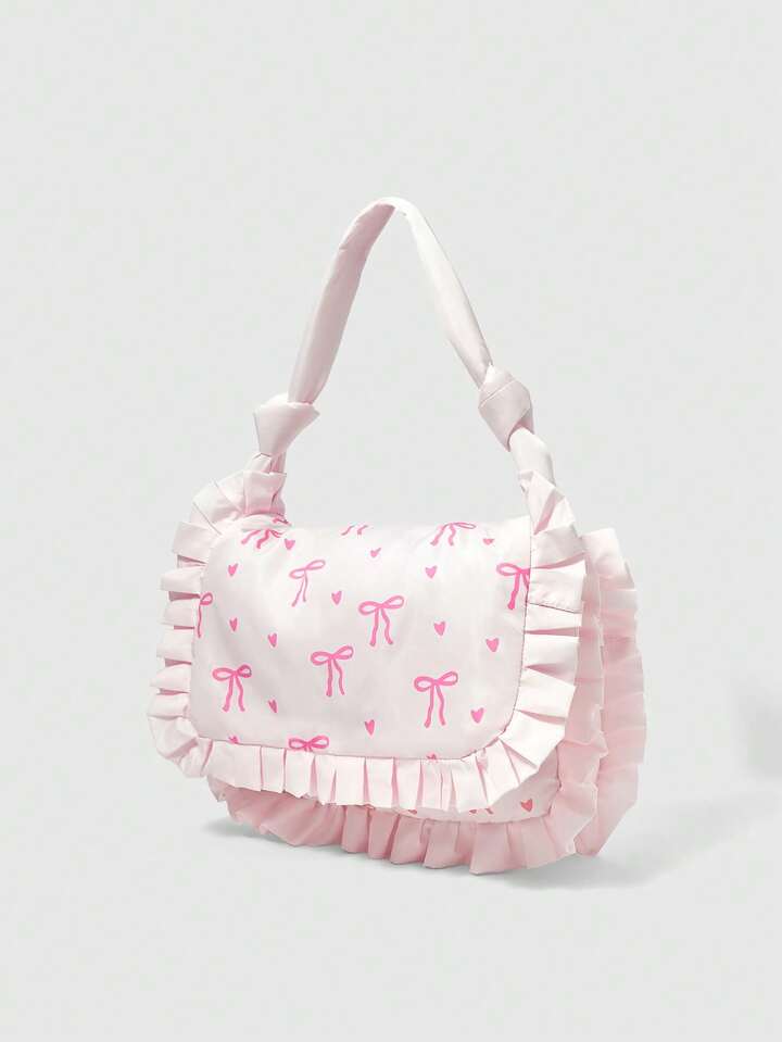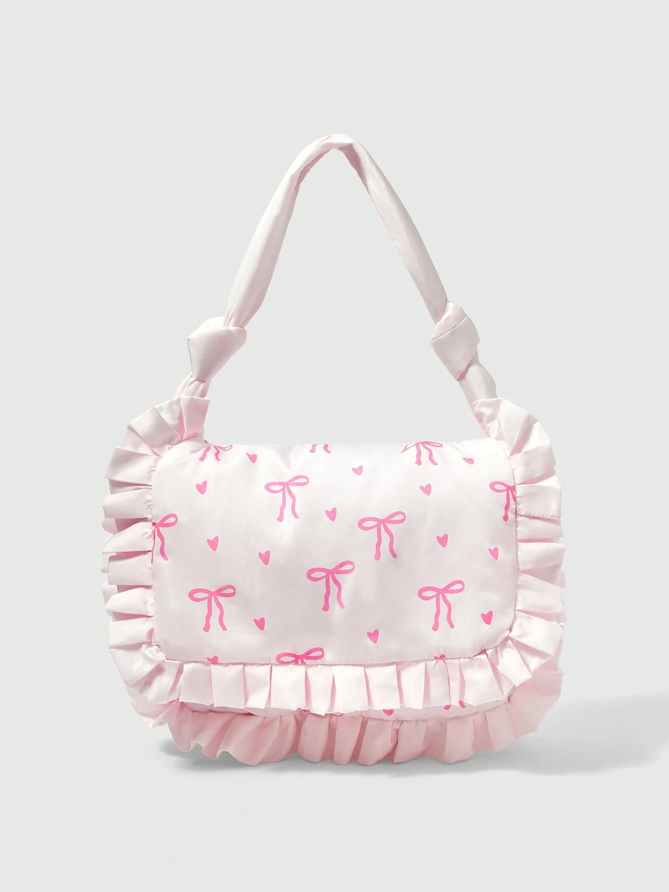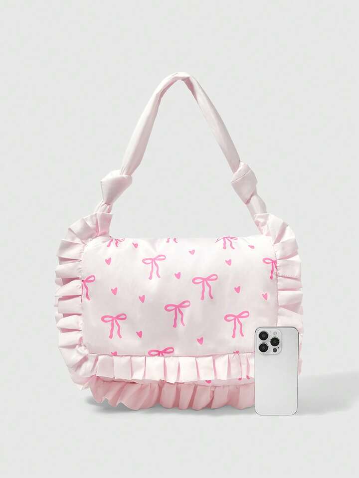 Kawaii Women's Bow Print Frilled Edge Cute Tote Bag