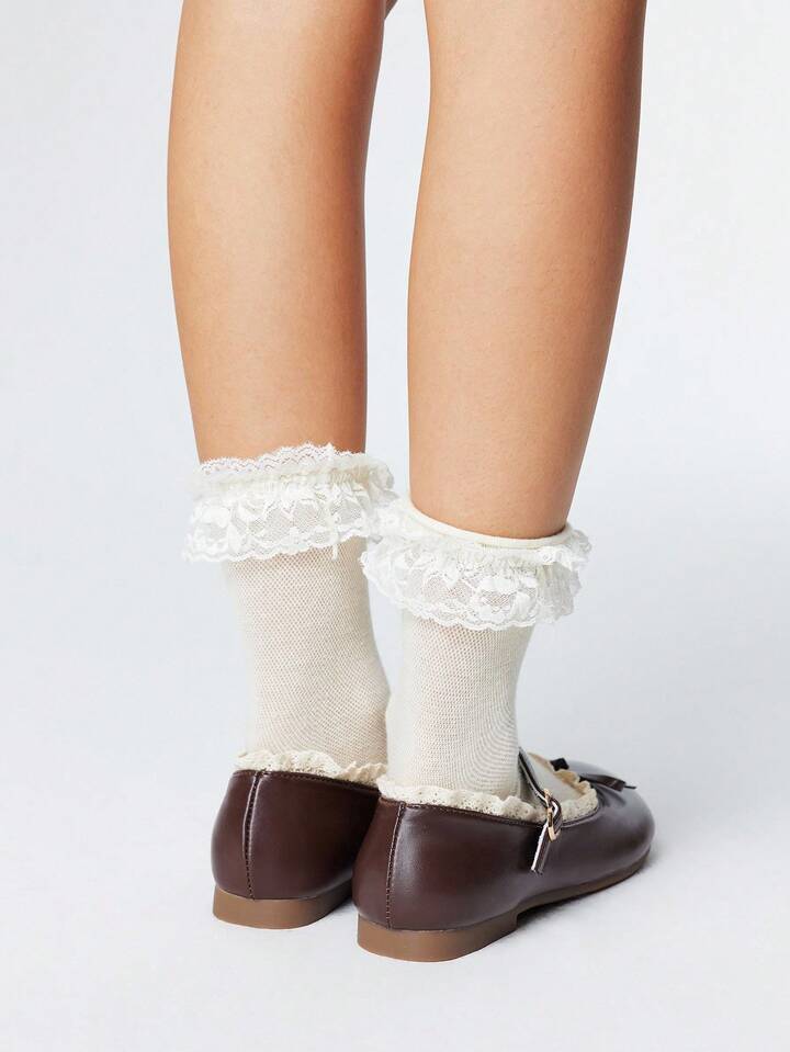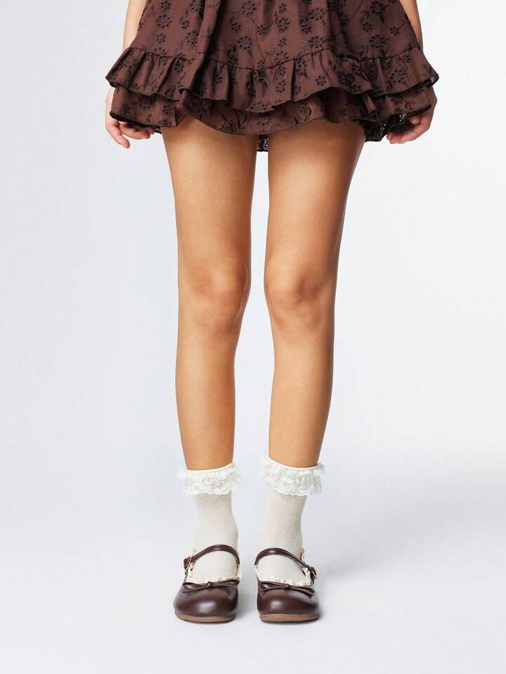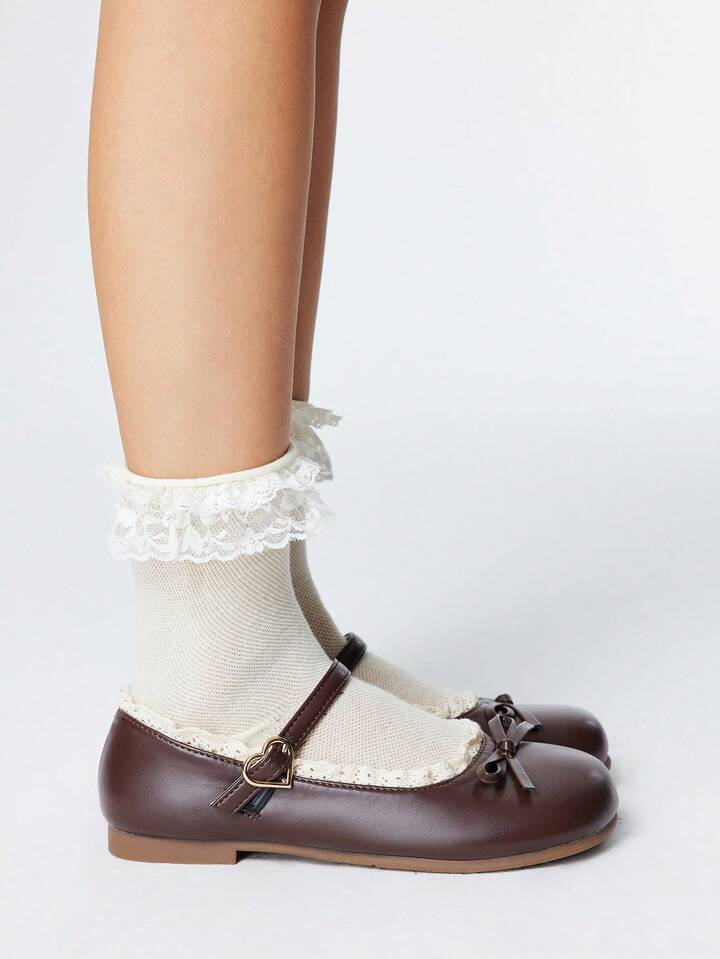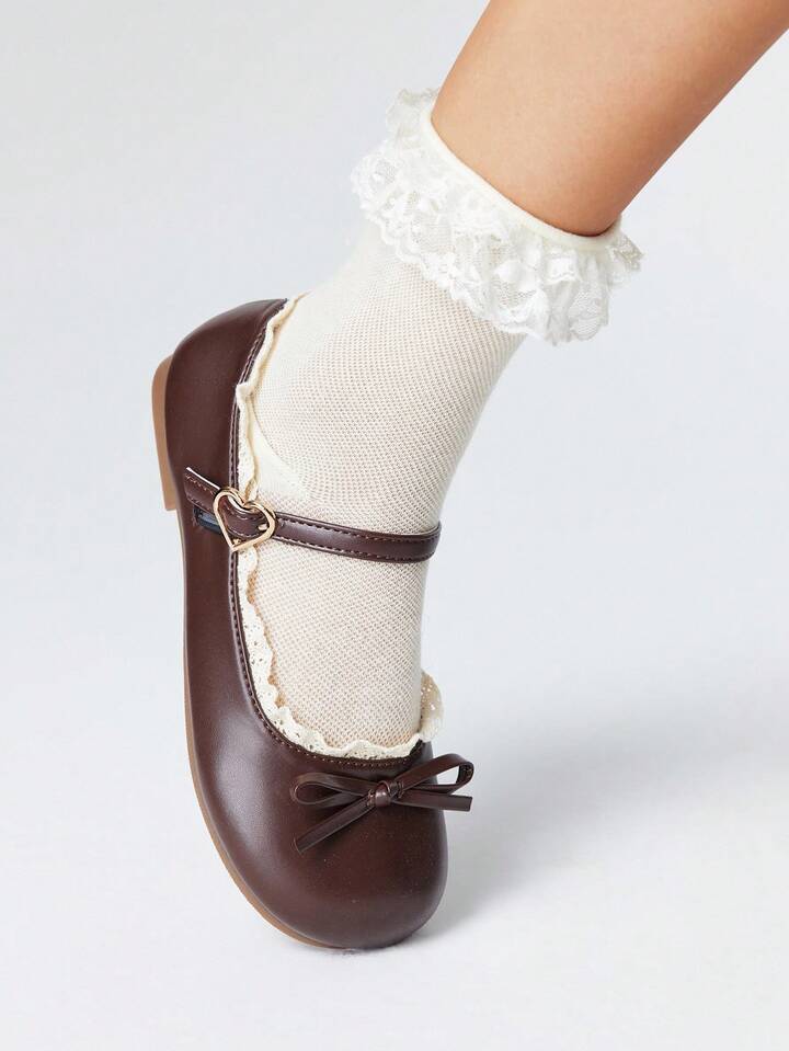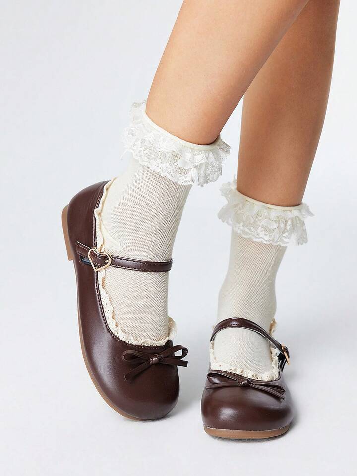 Kawaii Women's Brown Loafers, Closed Toe Mary Jane Flats, Bow Lace Lolita Ballet Flat Shoes