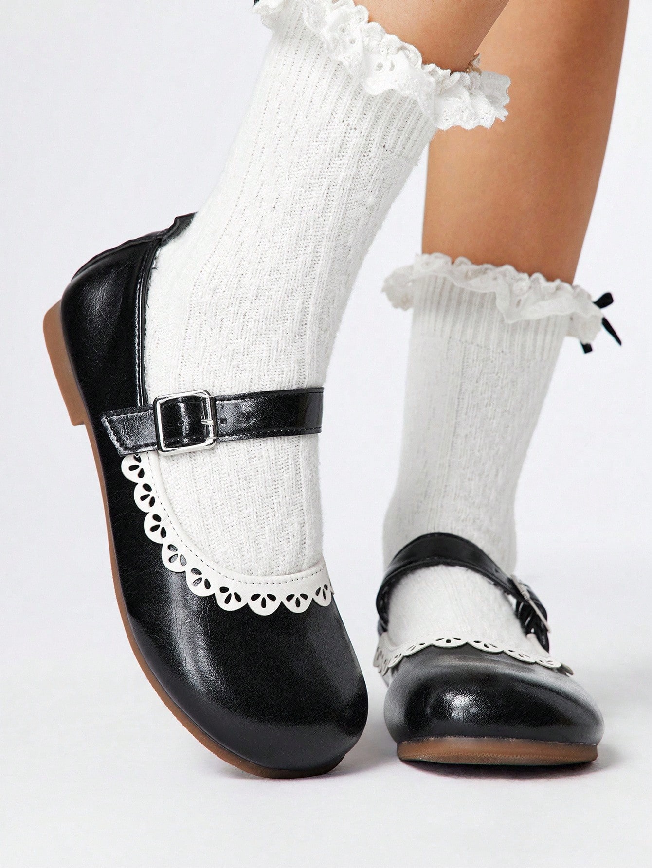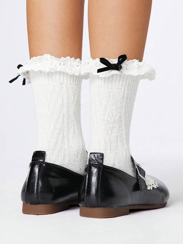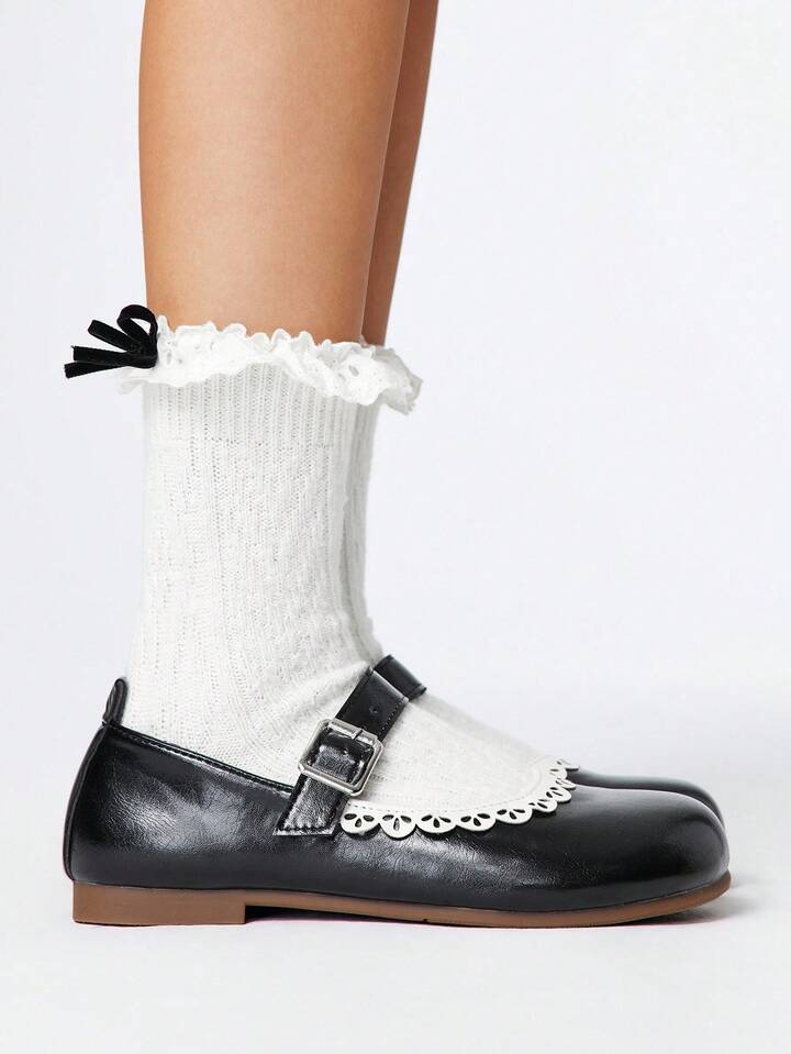 Kawaii Women's Brown Loafers, Closed Toe Mary Jane Flats, Bow Lace Lolita Ballet Flat Shoes