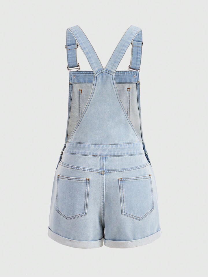 Kawaii Women's Cartoon Cat Embroidery Plant Pattern Denim Overall Shorts, School