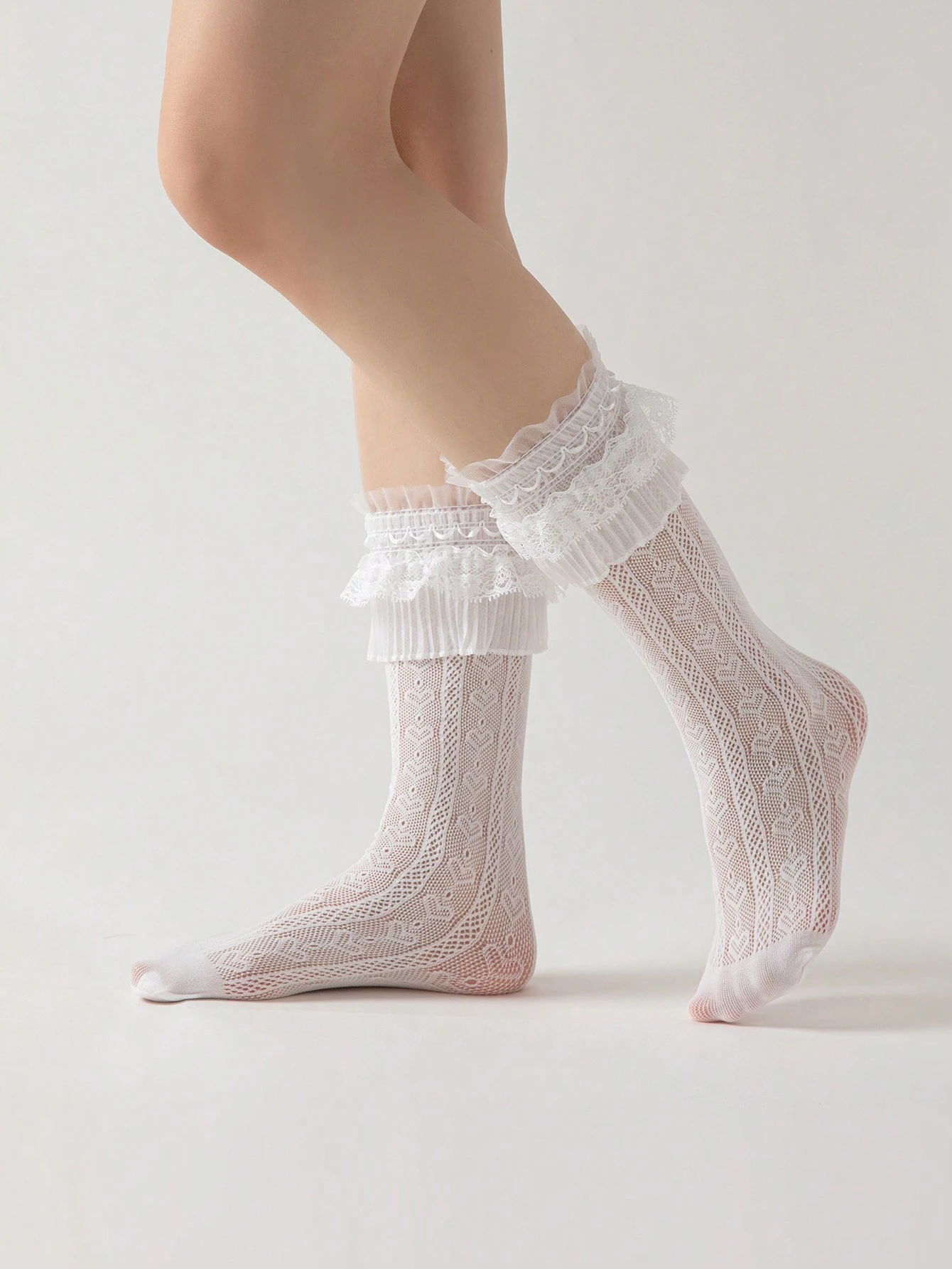 Kawaii Women's Contrast Lace Cute Crew Socks