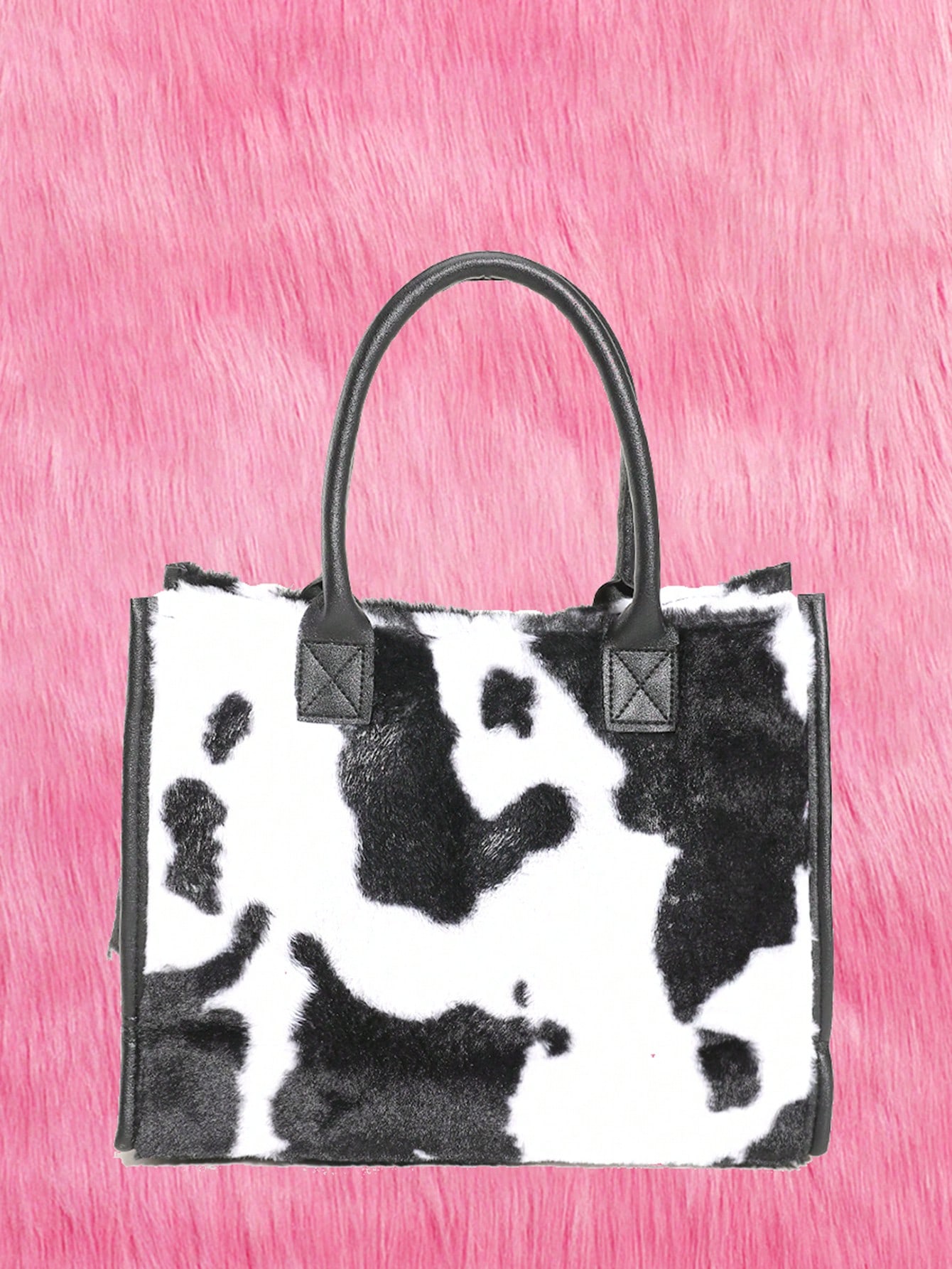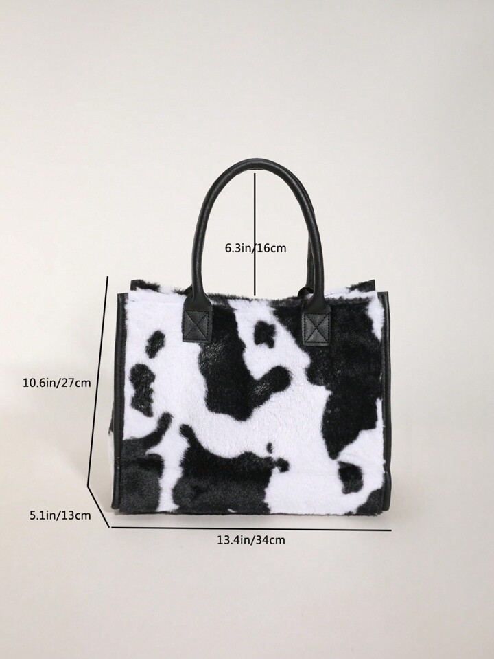 Kawaii Women's Cow Pattern Plush Clutch Tote Bag