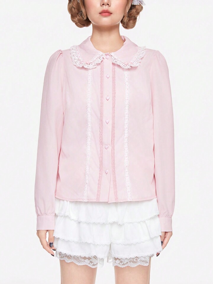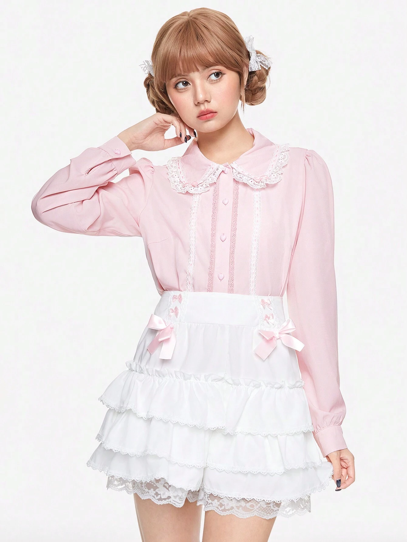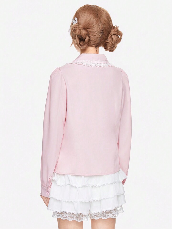 Kawaii Women's Cute Lace Edge Bow Decor Blouse