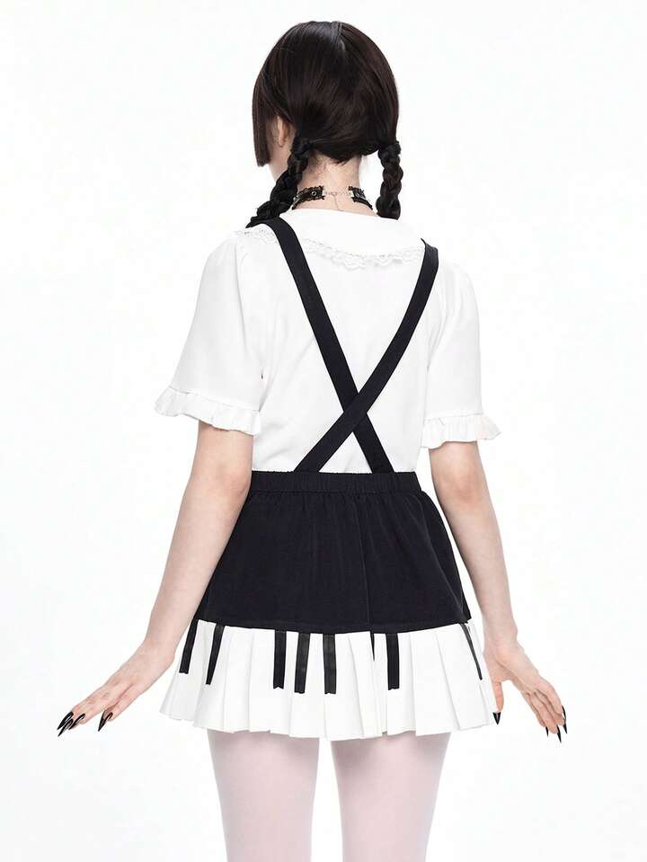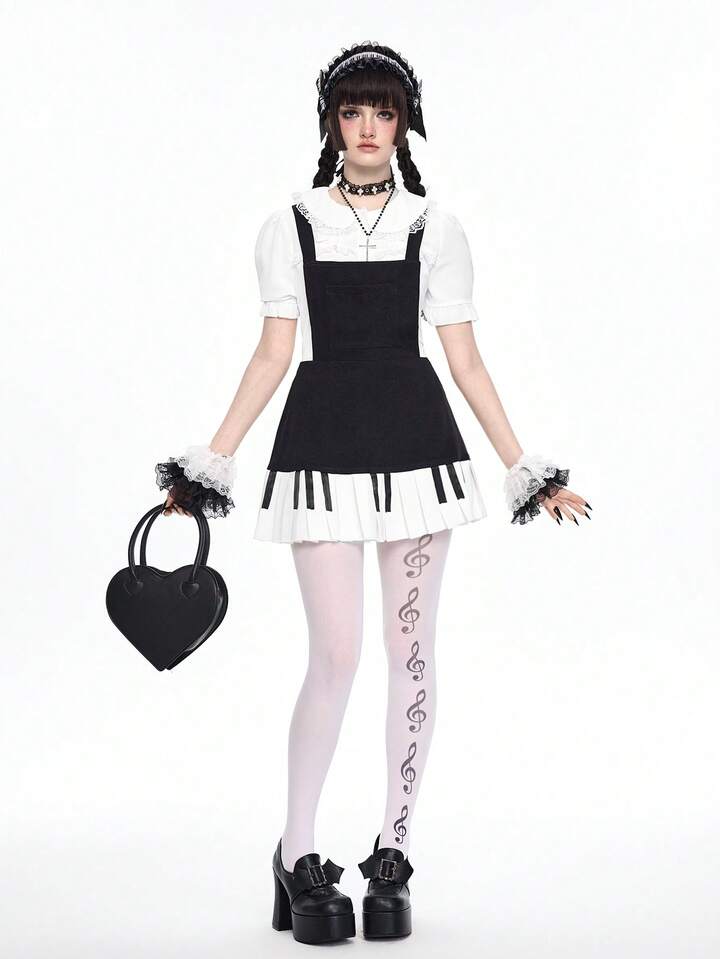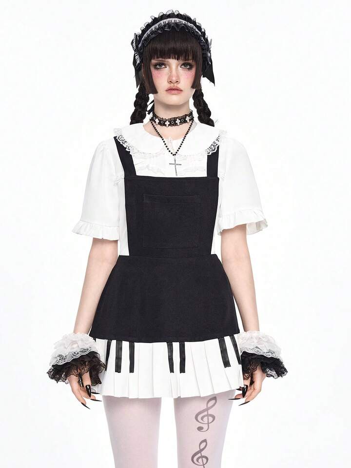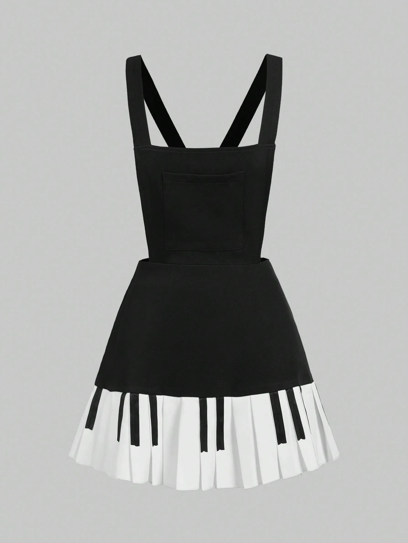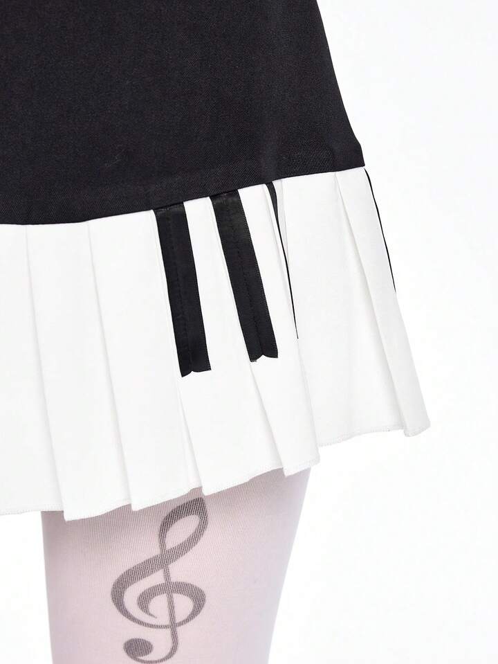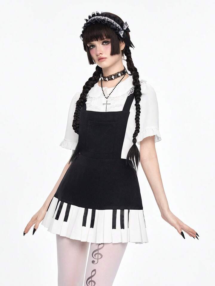 Kawaii Women's Cute Musical Note & Piano Key Embroidered Strap Mini Dress