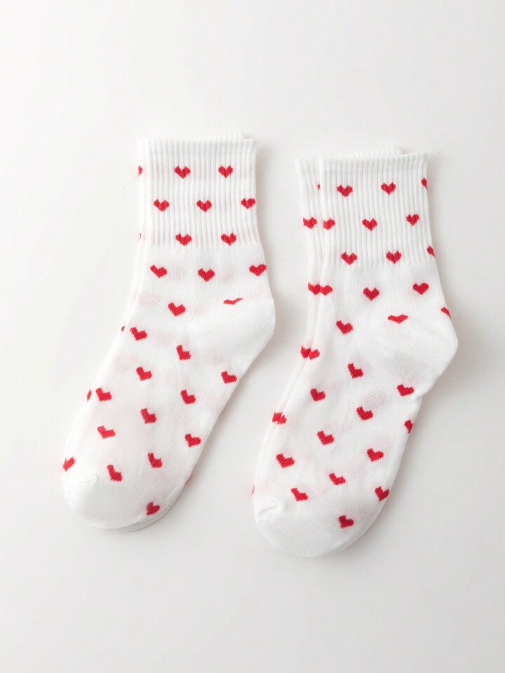 Kawaii Women's Heart Decor Minimalist Mid-Calf Socks, Casual Daily Wear