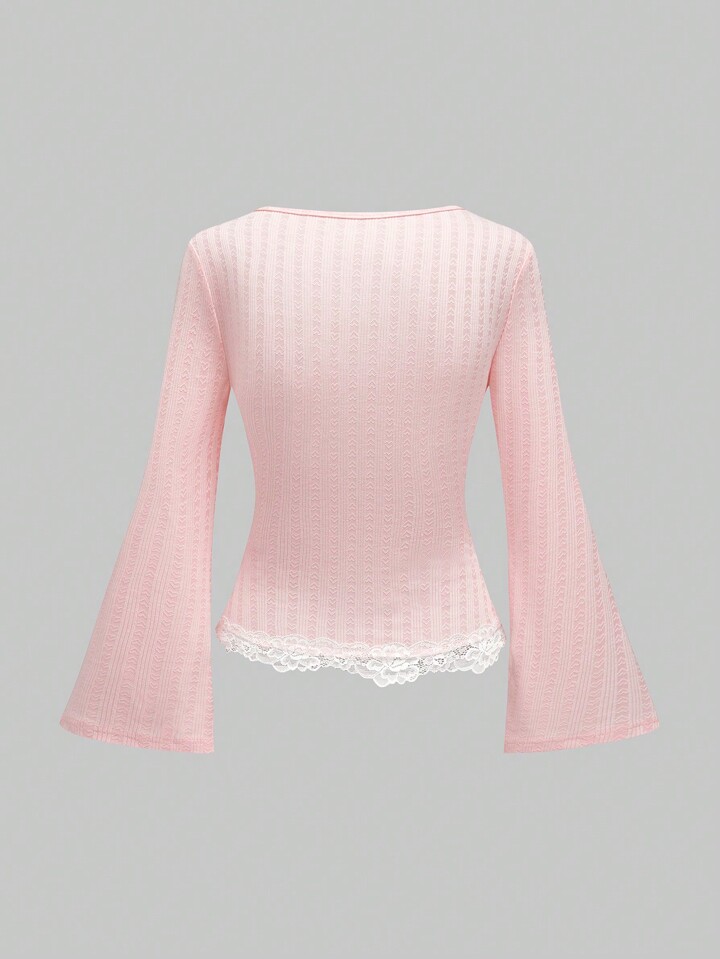 Kawaii Women's Himekaji Lace Patchwork Bow Decor Long Sleeve Casual T-Shirt