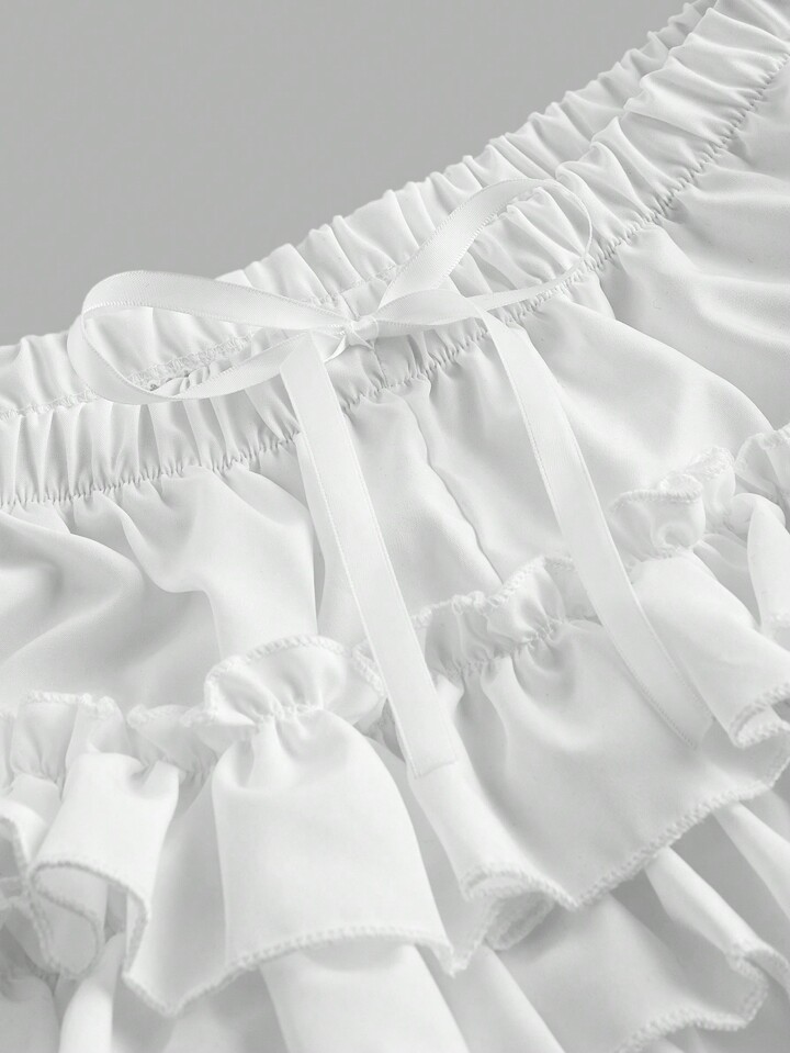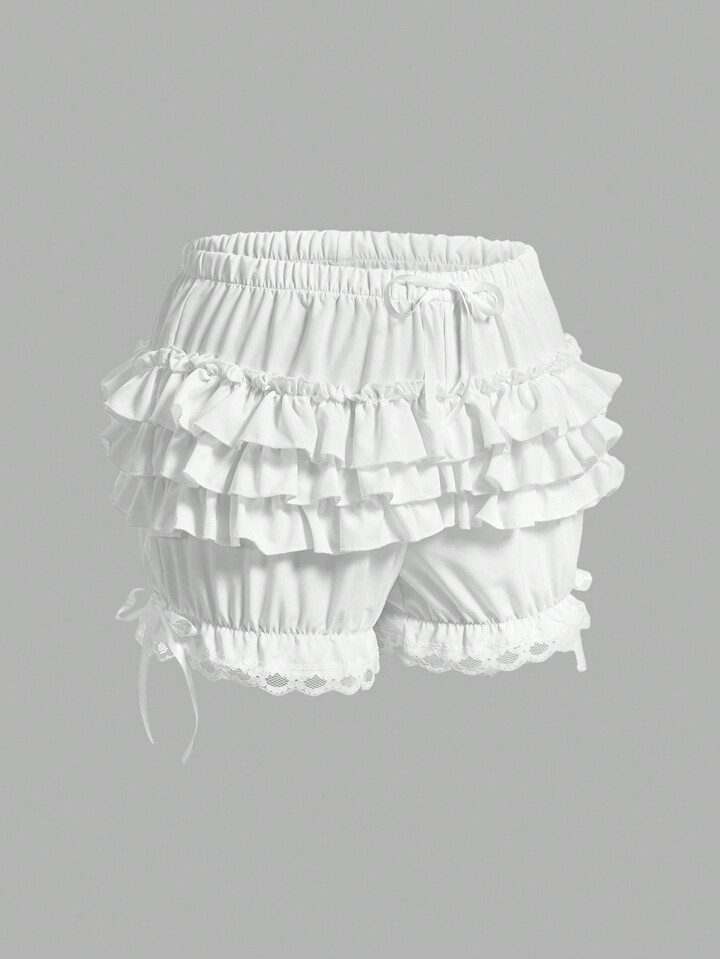 Kawaii Women's Himekaji Solid Color Patchwork Multi-Layer Ruffle Hem Shorts, School