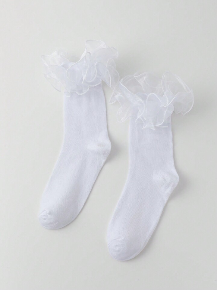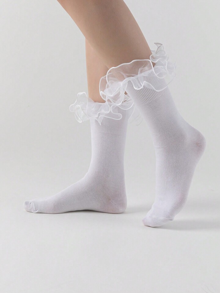 Kawaii Women's Lace Decorated Simple Daily Mid-Calf Socks