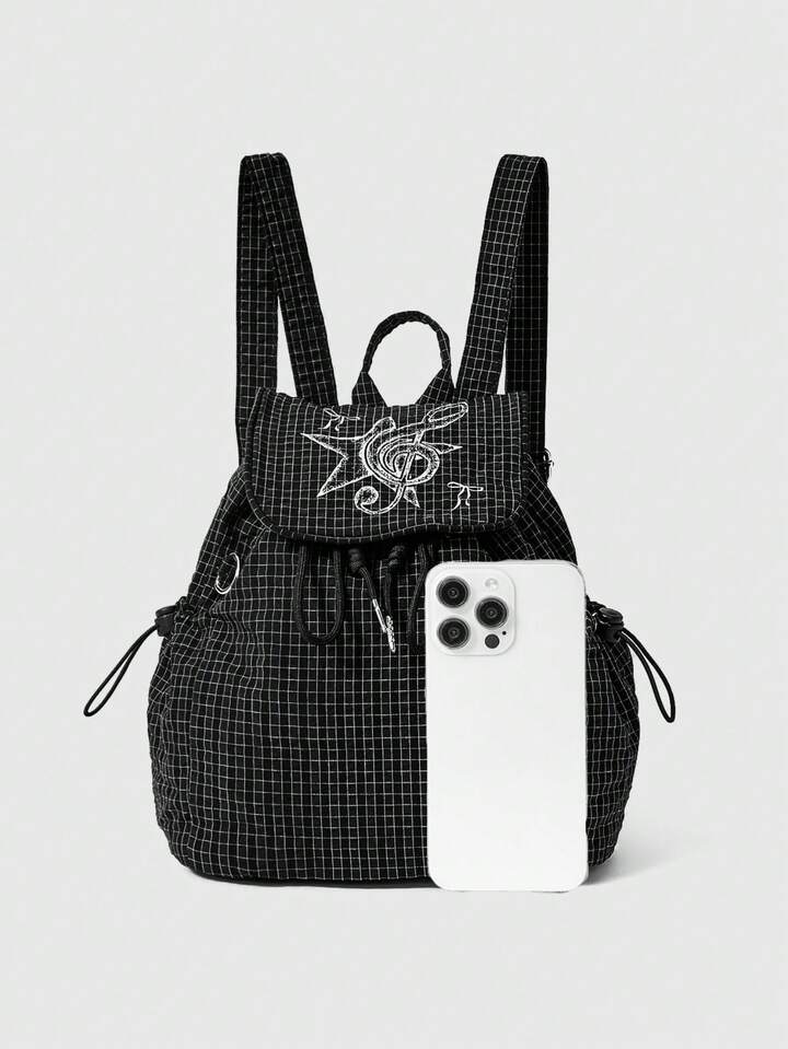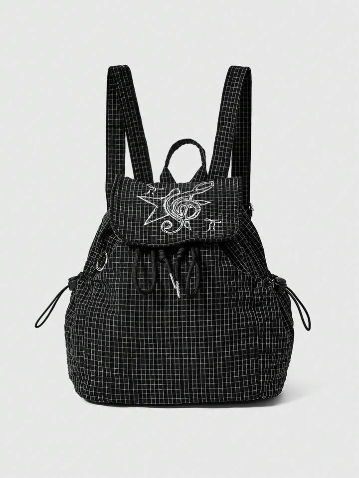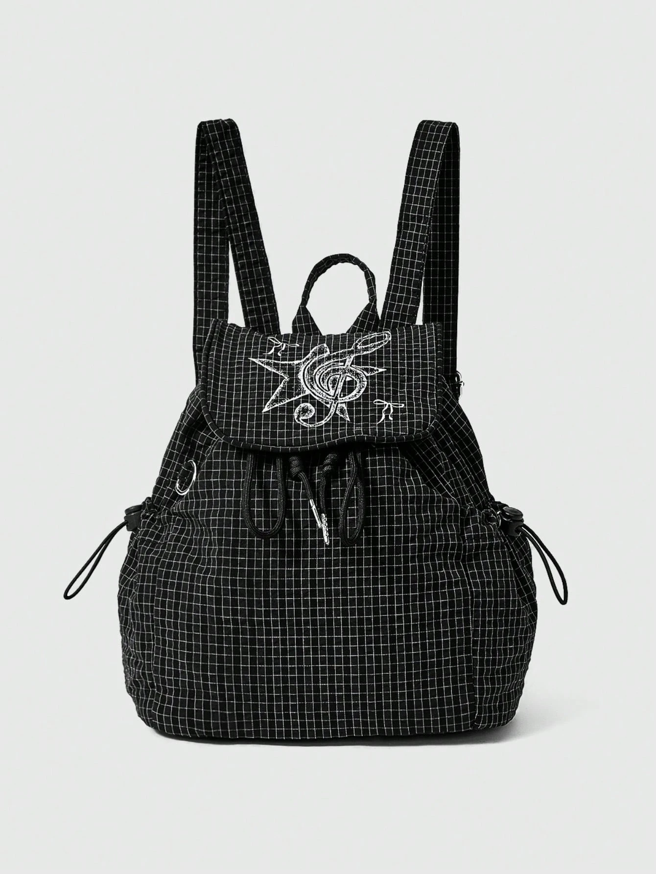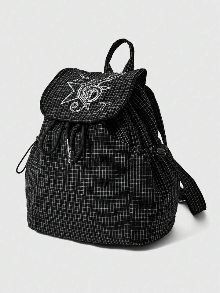 Kawaii Women's Musical Note Plaid Pattern Large Capacity Fashion Backpack