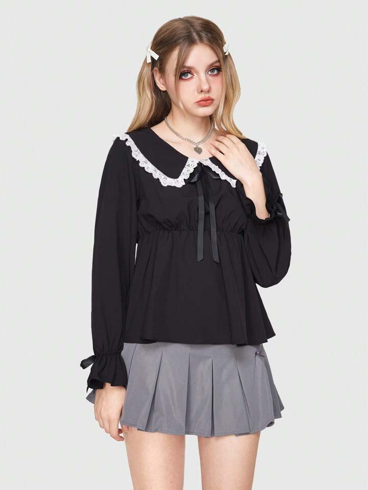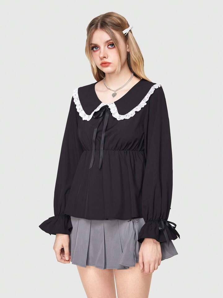 Kawaii Women's Peter Pan Collar Shirt With Ruffle Hem