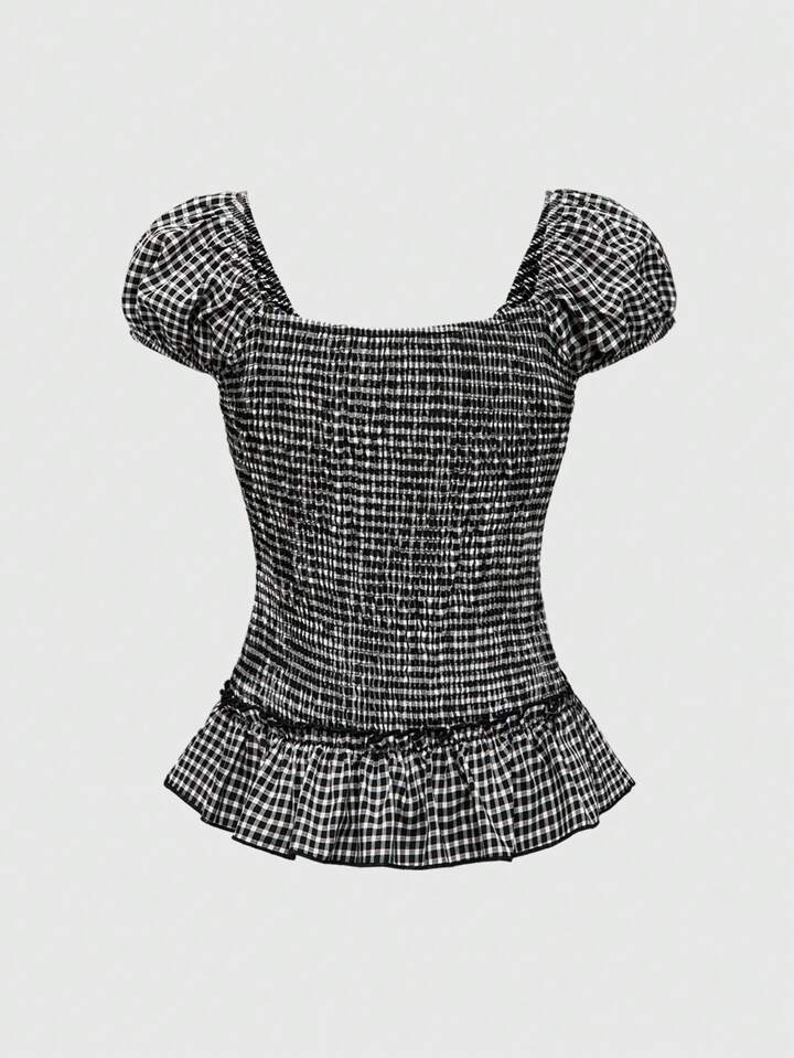 Kawaii Women's Plaid Print Blouse With Bow Decor