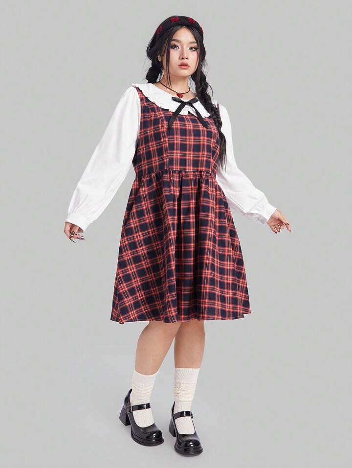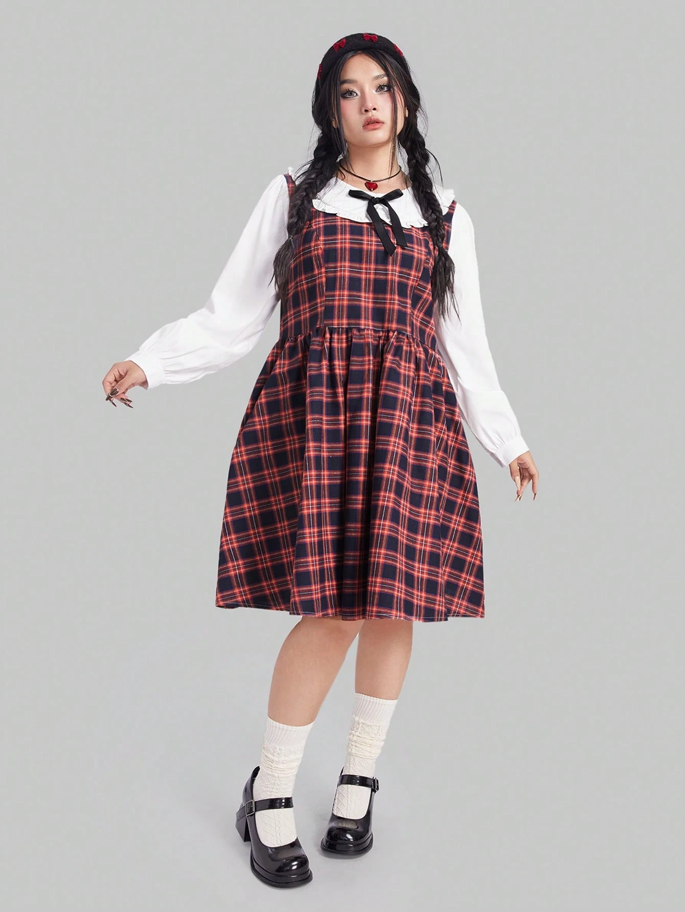 Kawaii Women's Red Plaid Dress With Bowknot Decoration