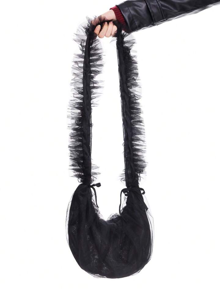 Kawaii Women's Ruched Mesh Cloud Decor Asymmetrical Shoulder Bag, Elegant Sweet Style, Versatile With Drawstring Decor And Frill Trim, Shoulder/Handbag