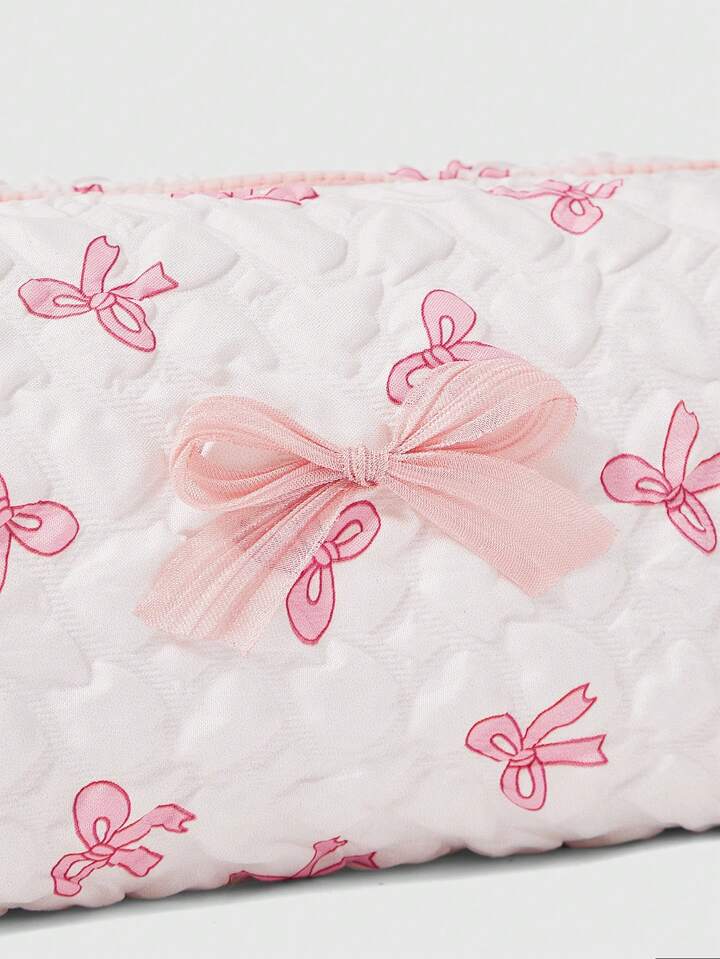 Kawaii Women's Simple Casual Bow Decor Zipper Clutch Bag