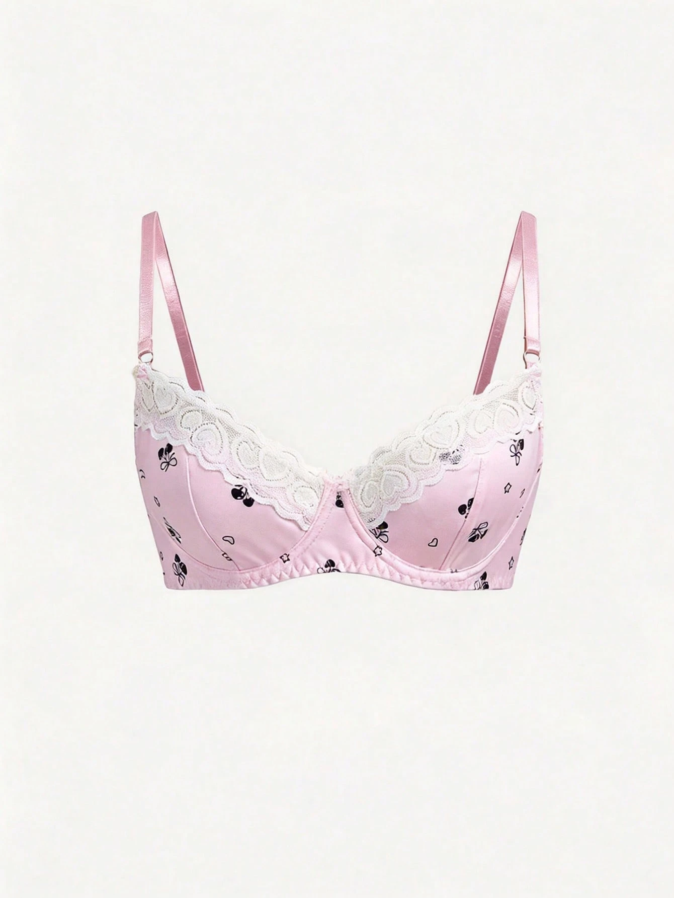 Kawaii Women's Sweet & Sexy Cherry Heart Lace Wireless Bra