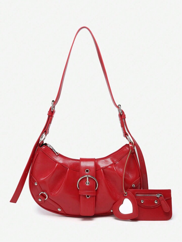 Kawaii Women's Vintage Y2K Five-Pointed Star Metal Decor Bow Cherry Rivet Card Holder Leopard Fur Ball Tail Accessory Underarm Bag Crescent Shoulder Bag Motorcycle Bag