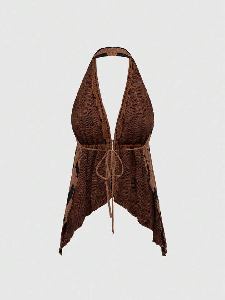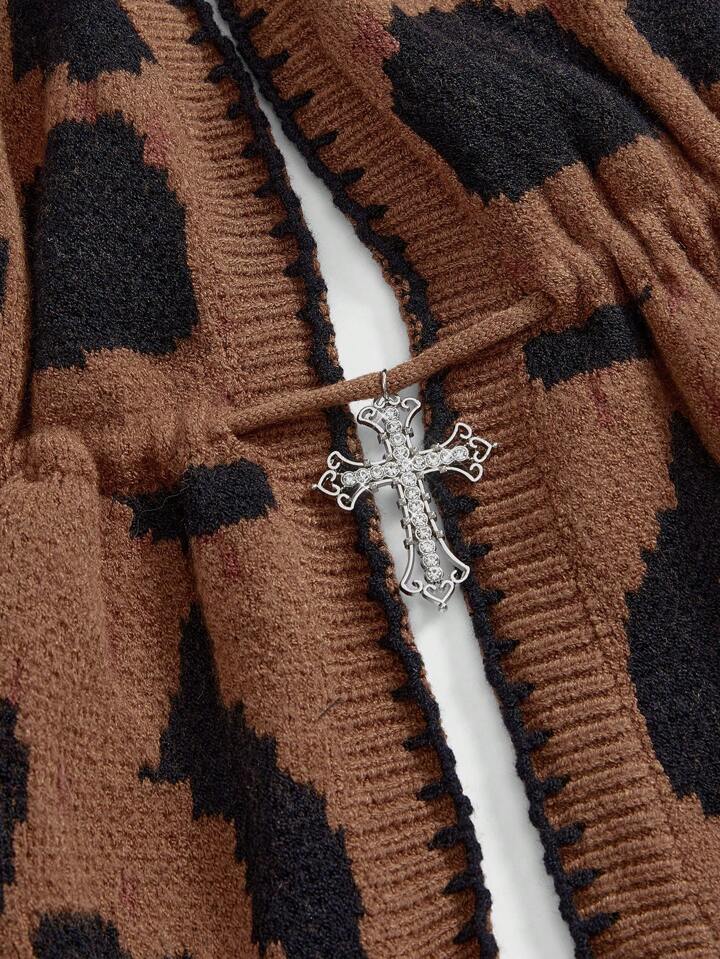 Kawaii Y2K Leopard Print Hollow-Out Asymmetric Hem Sexy Knitted Top
