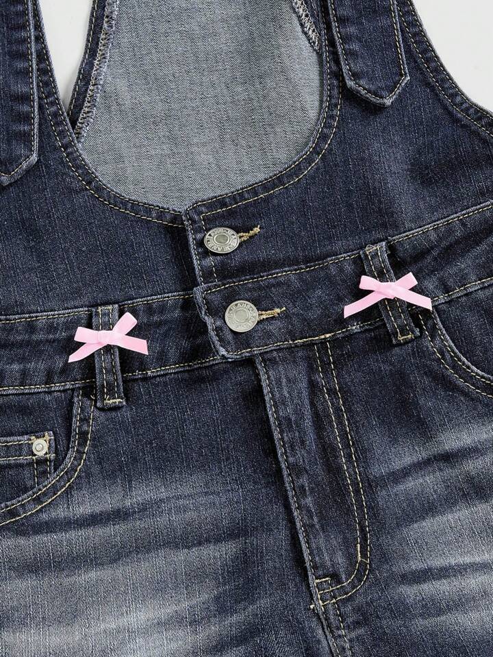 Kawaii Y2K Low-Waisted Vintage Style Bow Fuzzy Denim Overalls