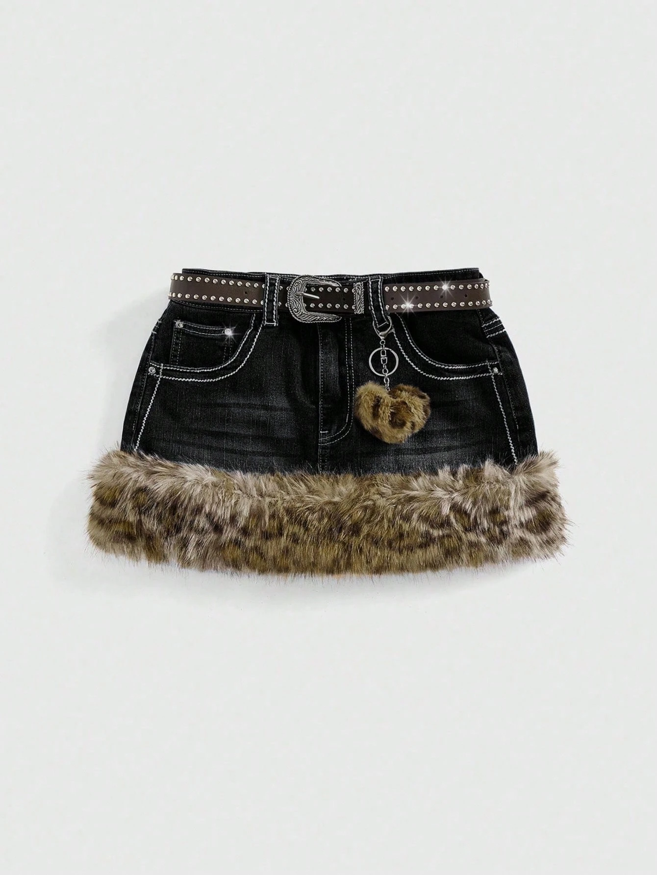 Kawaii Y2K Vintage Leopard Print Frayed Hem Plus Size Women Kpop Mini Low Waist Skirt With Belt Accessory