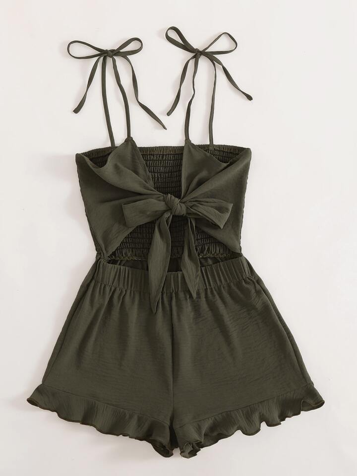 Knot Detail Shirred Ruffle Hem Cami Romper